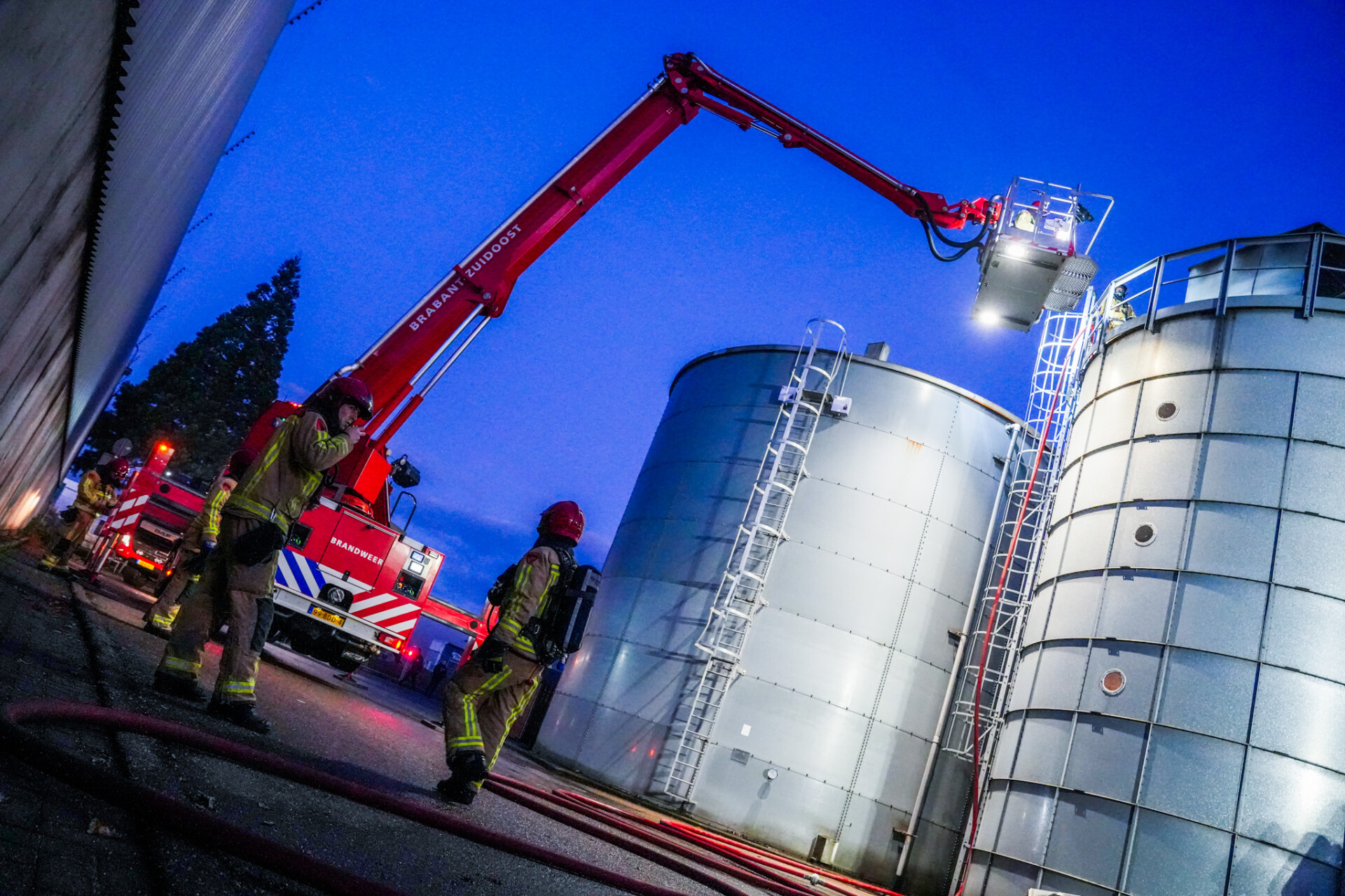 Door de explosie vloog de explosieklep van een silo af en belandde op de grond. Op dit moment woedt er brand in zowel de silo als een container.