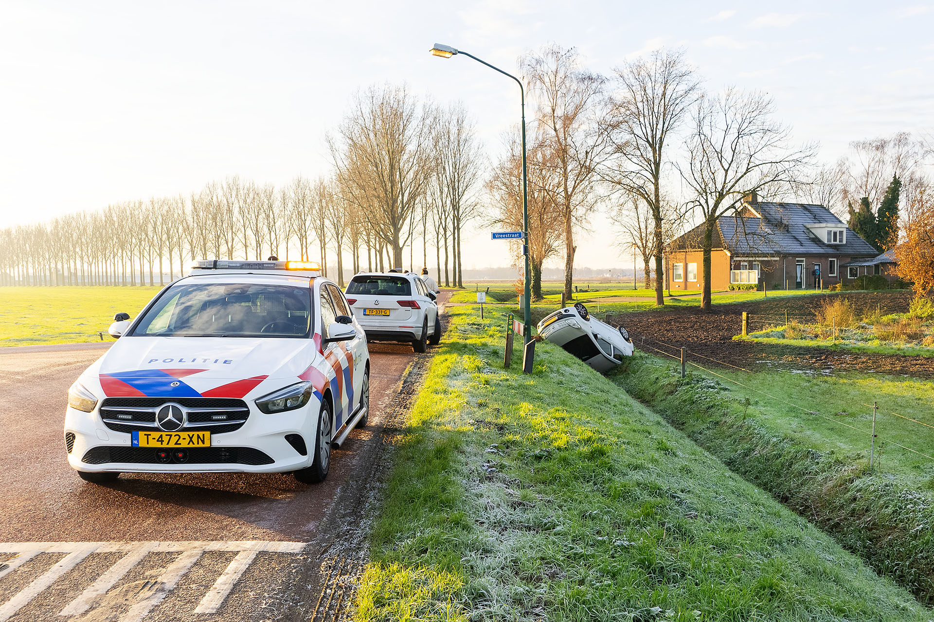Geplaatst op 30 november 2024, om 11:30 uurGEFFEN – In het buitengebied van Geffen is zaterdagochtend een auto door de gladheid van de weg geraakt en op de kop in een sloot beland.