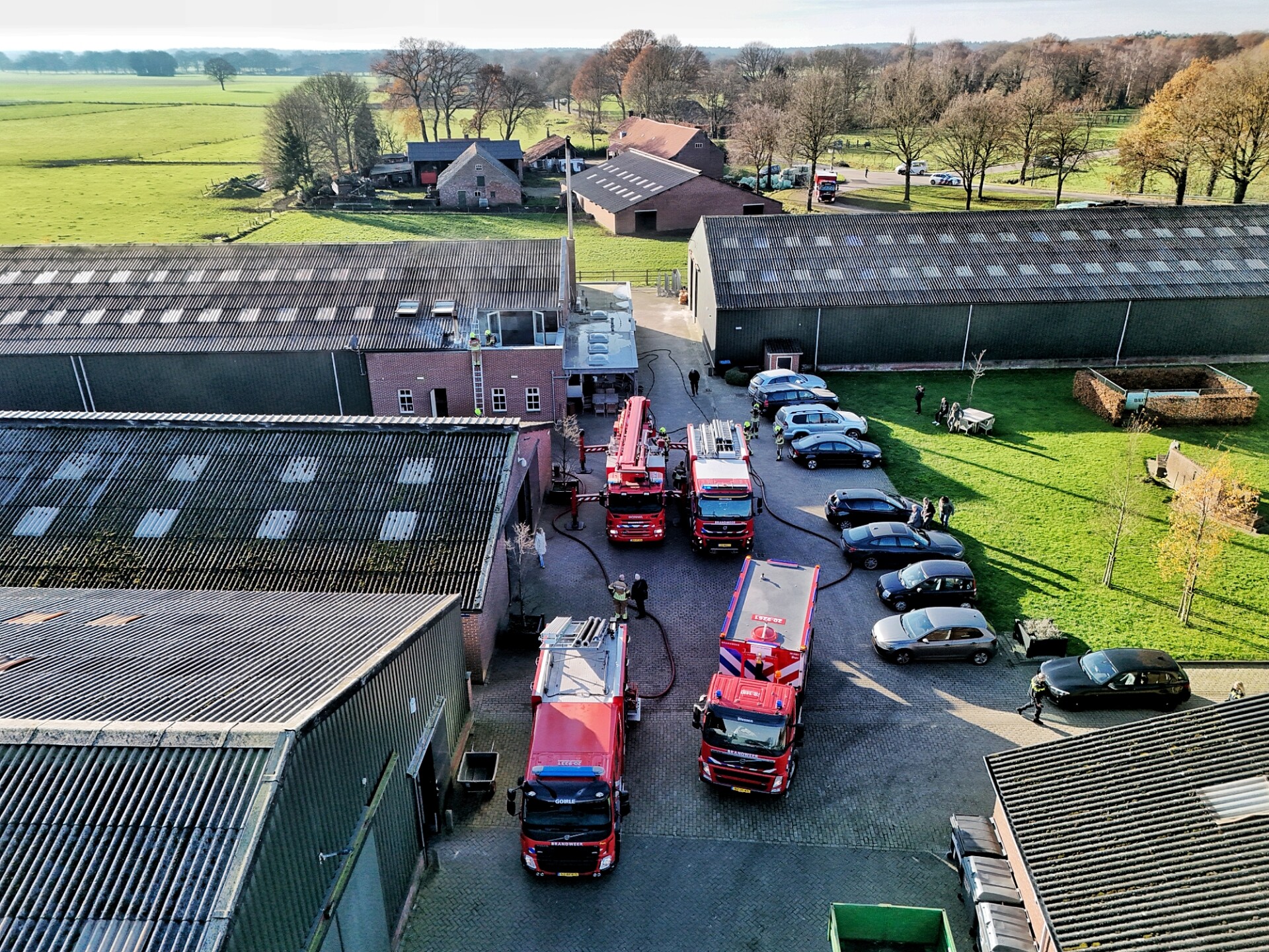 De brandweer kwam met zes voertuigen ter plaatse om de brand te bestrijden. Een ambulance werd opgeroepen om enkele personen te controleren op mogelijke rookinhalatie.