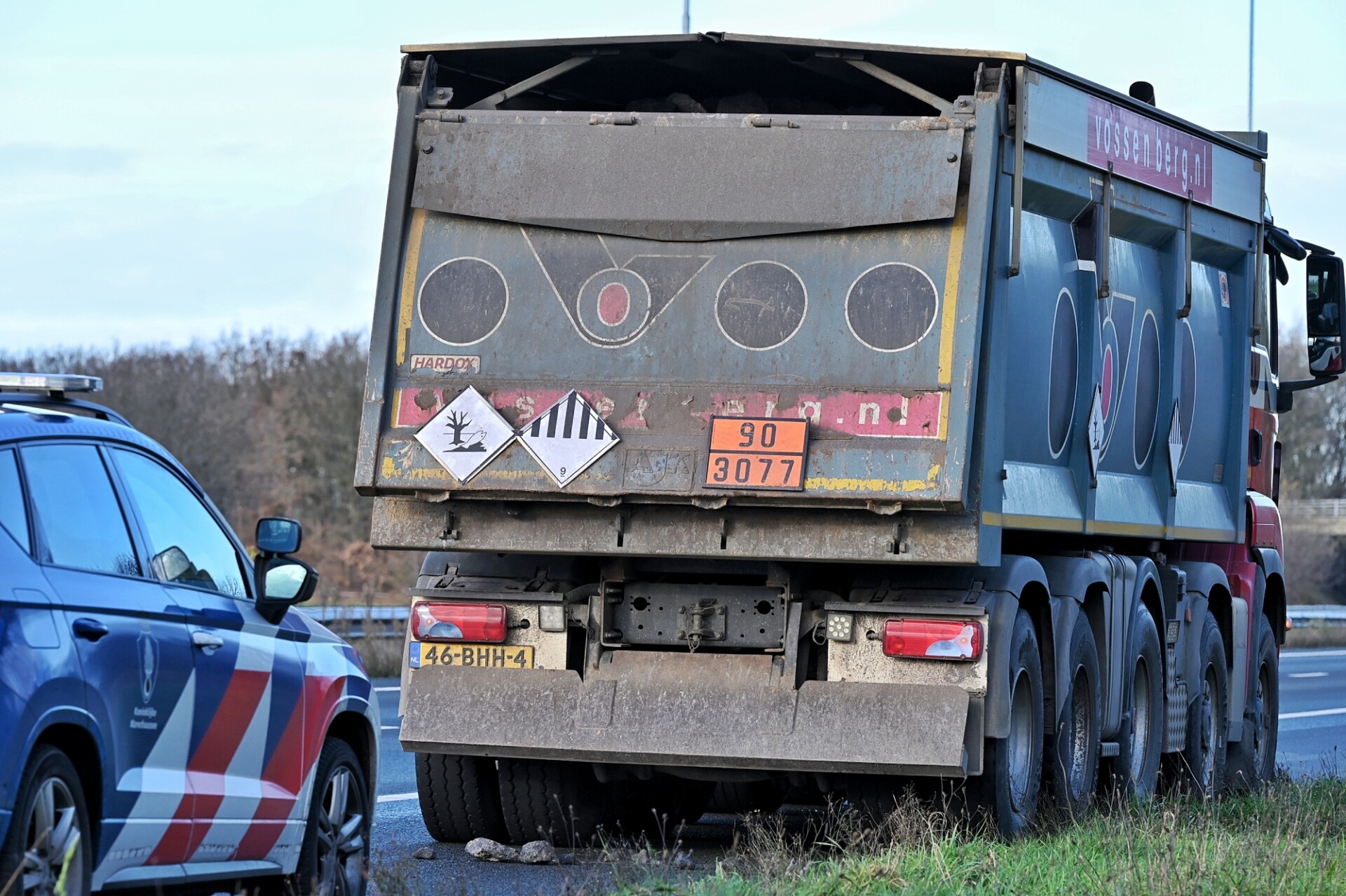 Vrachtwagen verliest lading chemisch puin, snelweg nog uren dicht