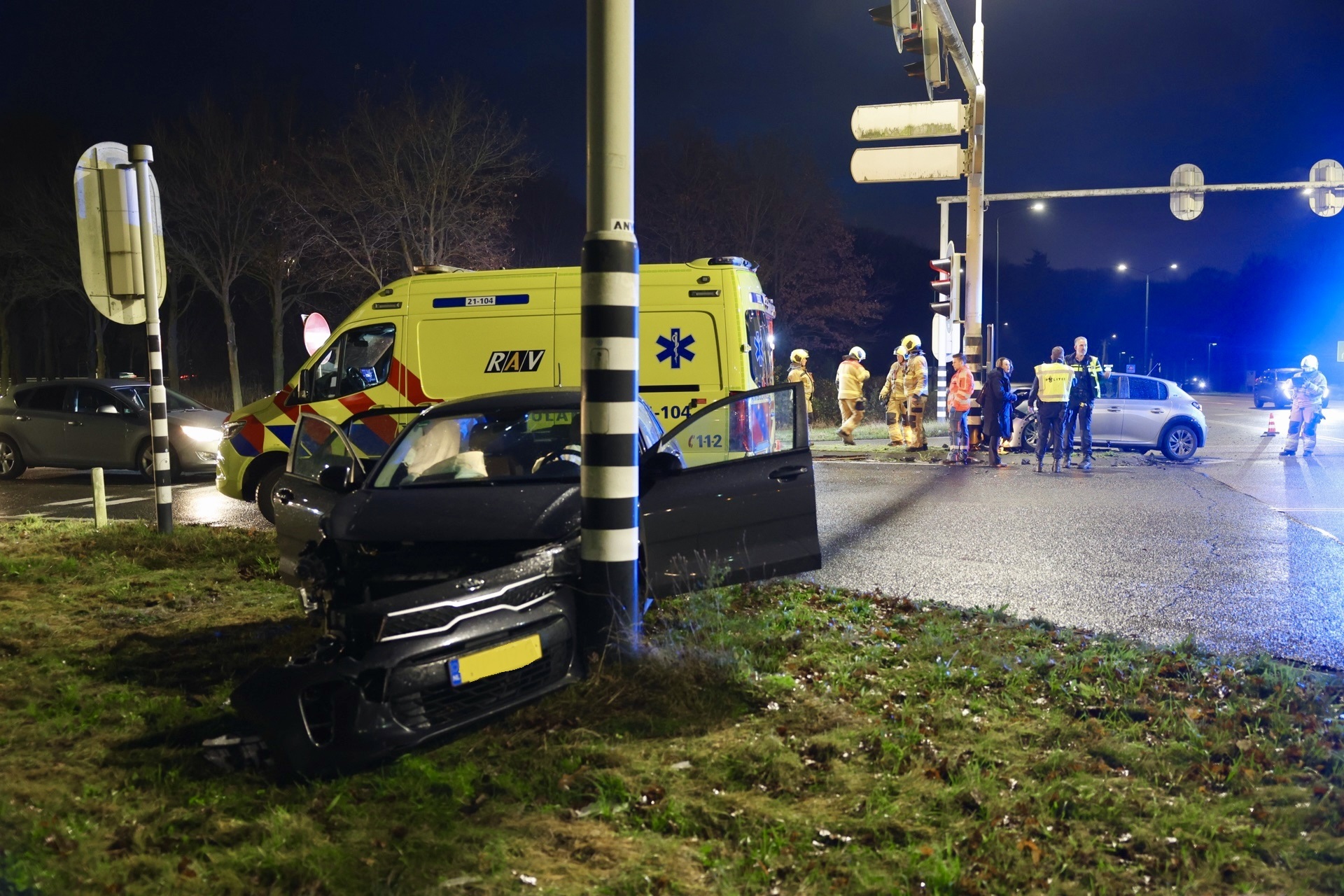 Twee automobilistes botsen tegen verkeerslichten, een vrouw naar het ziekenhuis