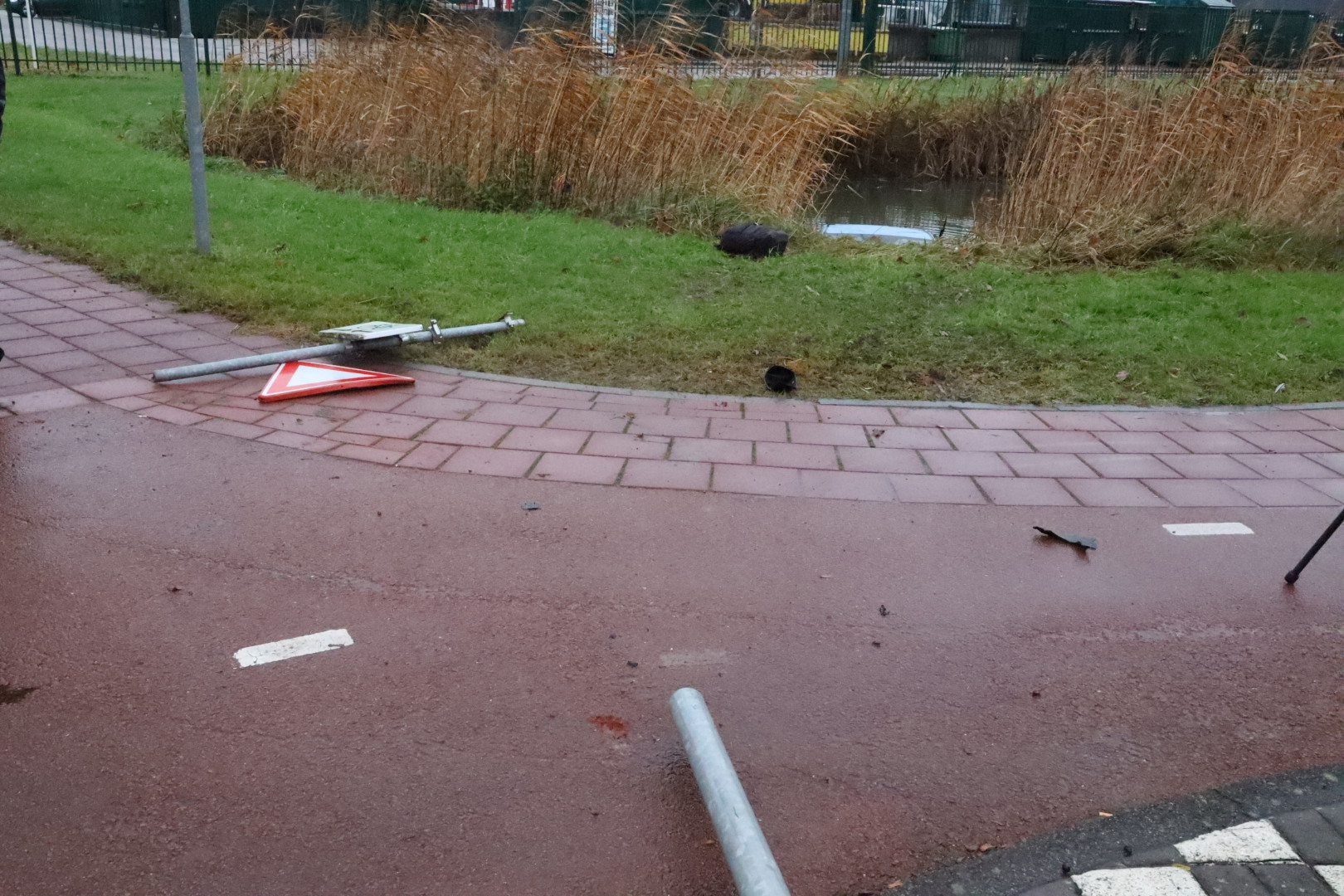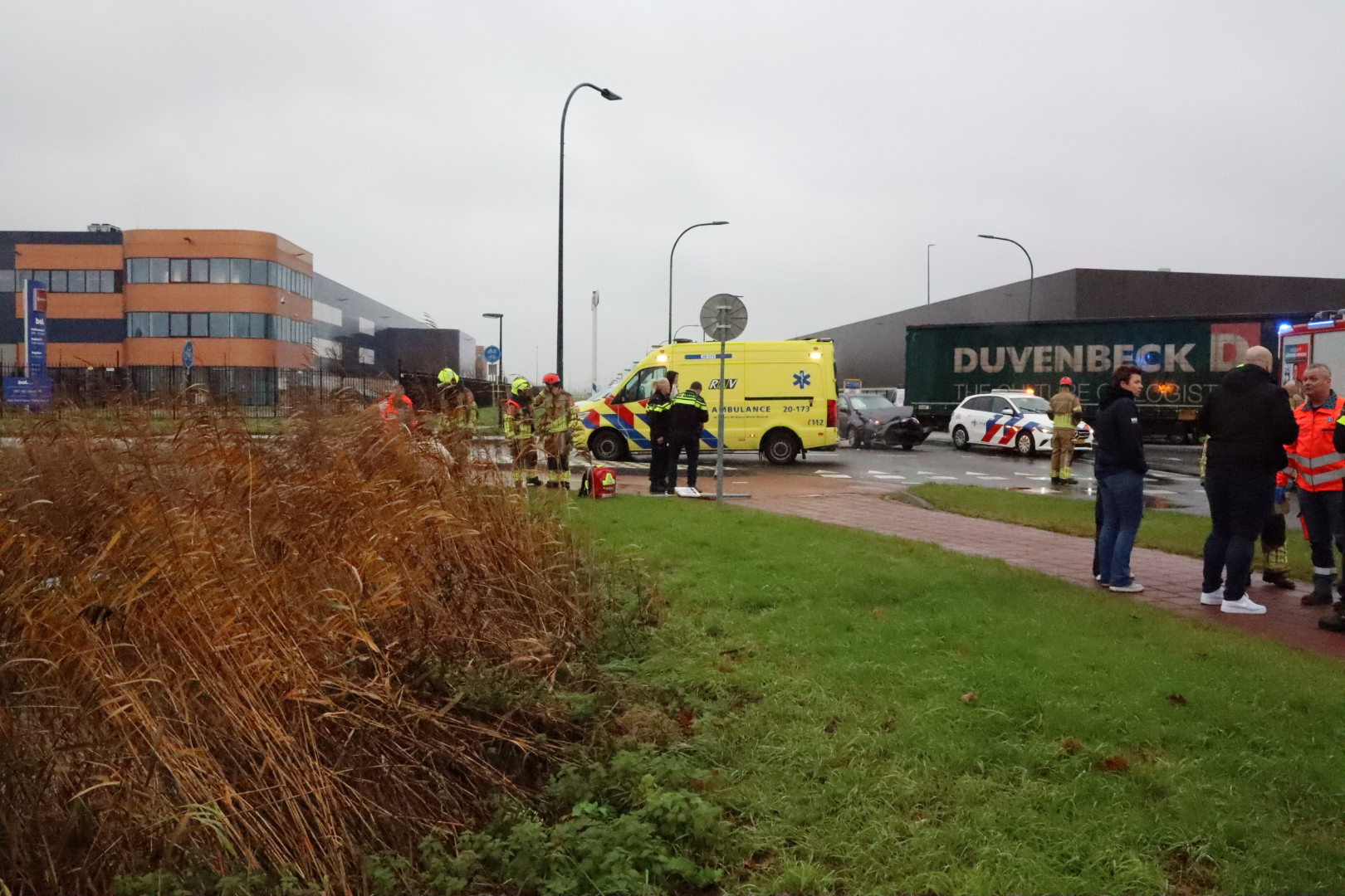Auto in sloot na botsing op kruising, bestuurder gewond