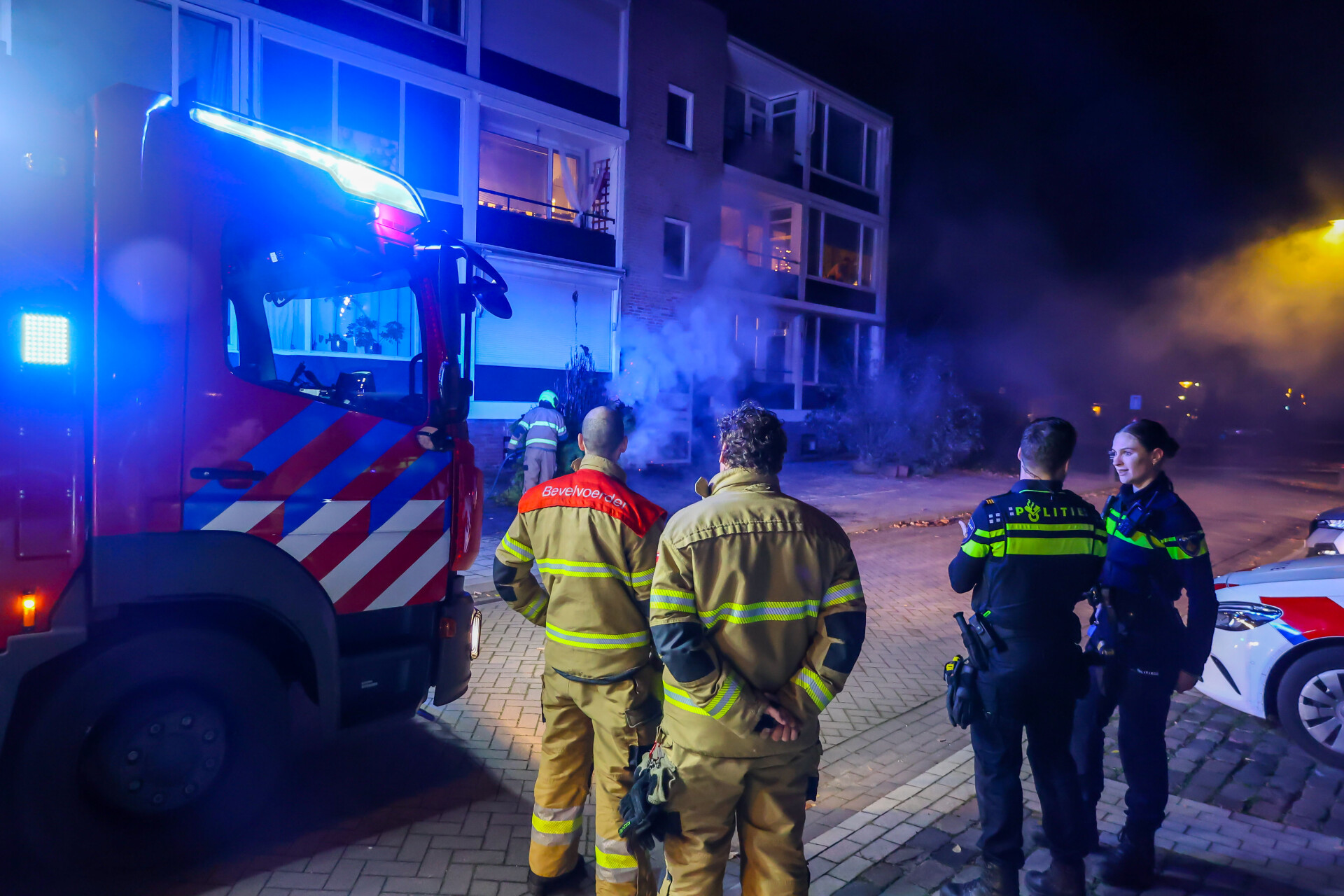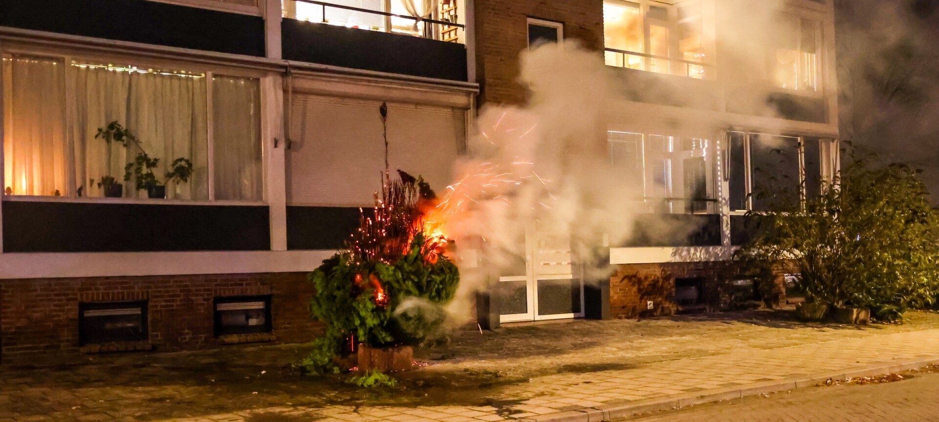 Brandweer rukt met spoed uit voor brandende conifeer langs appartementen