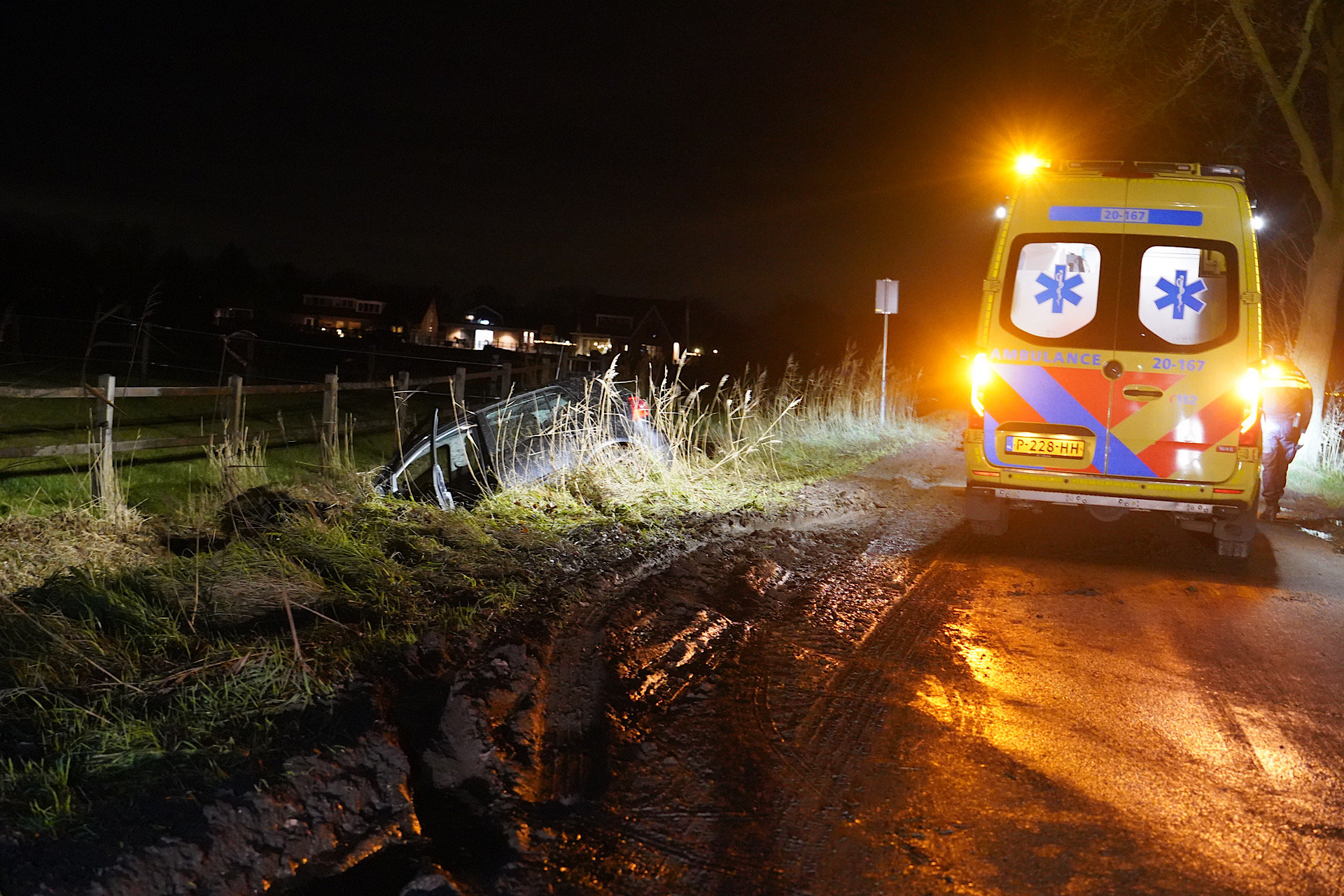 De bestuurder werd ter plaatse nagekeken in een ambulance, maar bleek niet gewond te zijn. Volgens eerste berichten zou de automobilist de macht over het stuur hebben verloren door de vele modder op de weg.