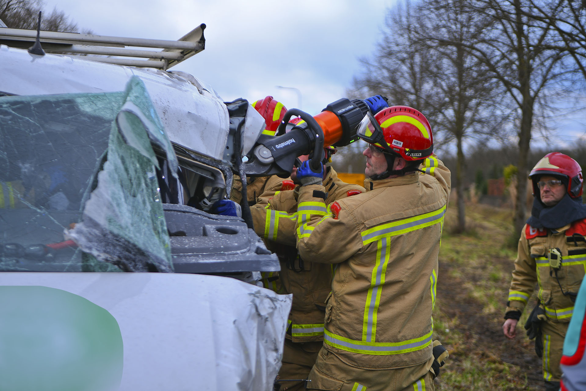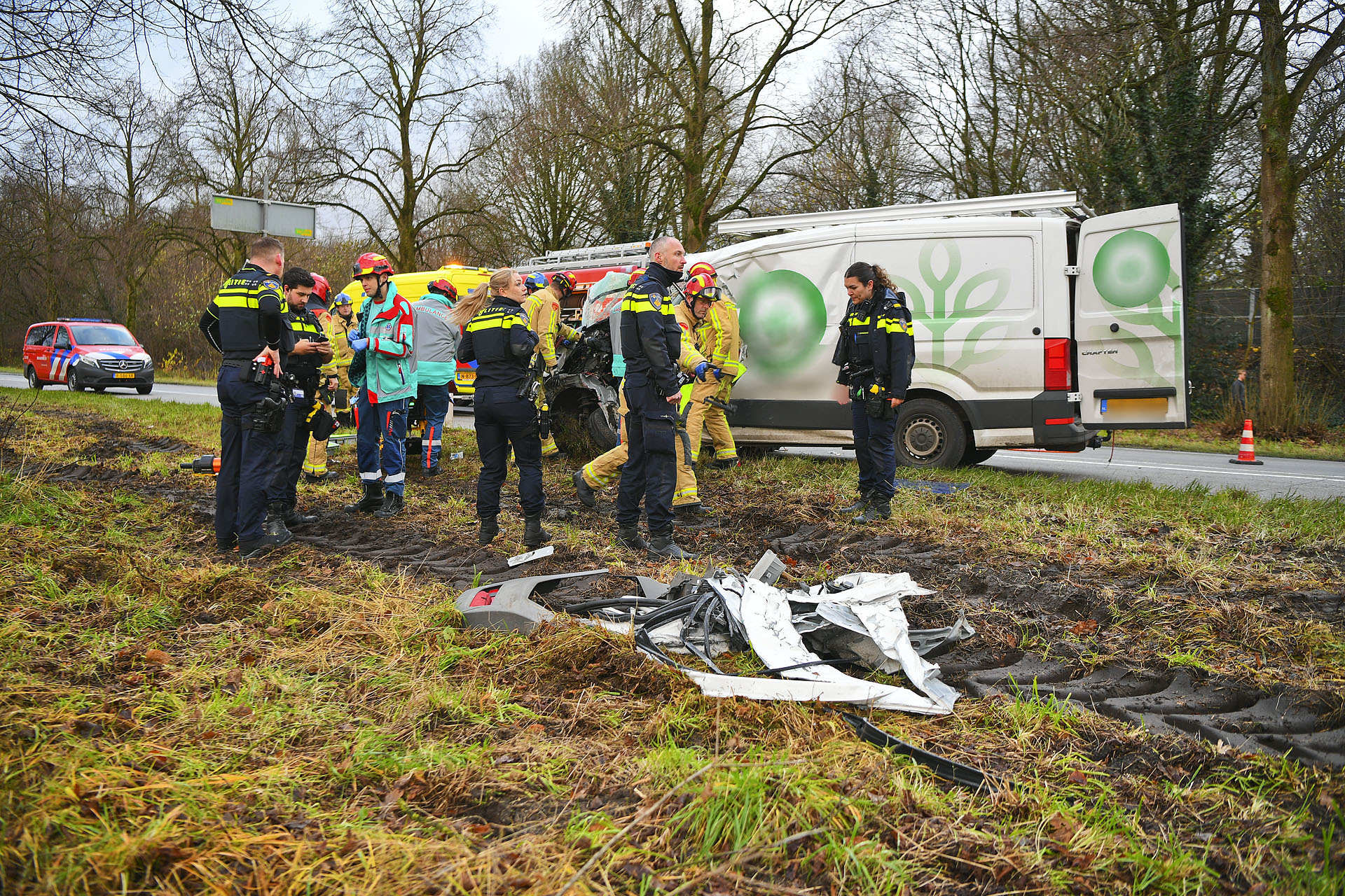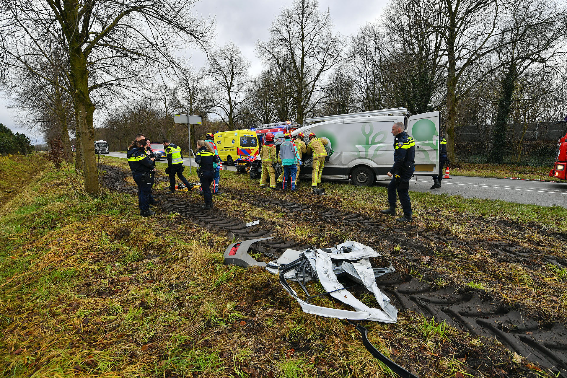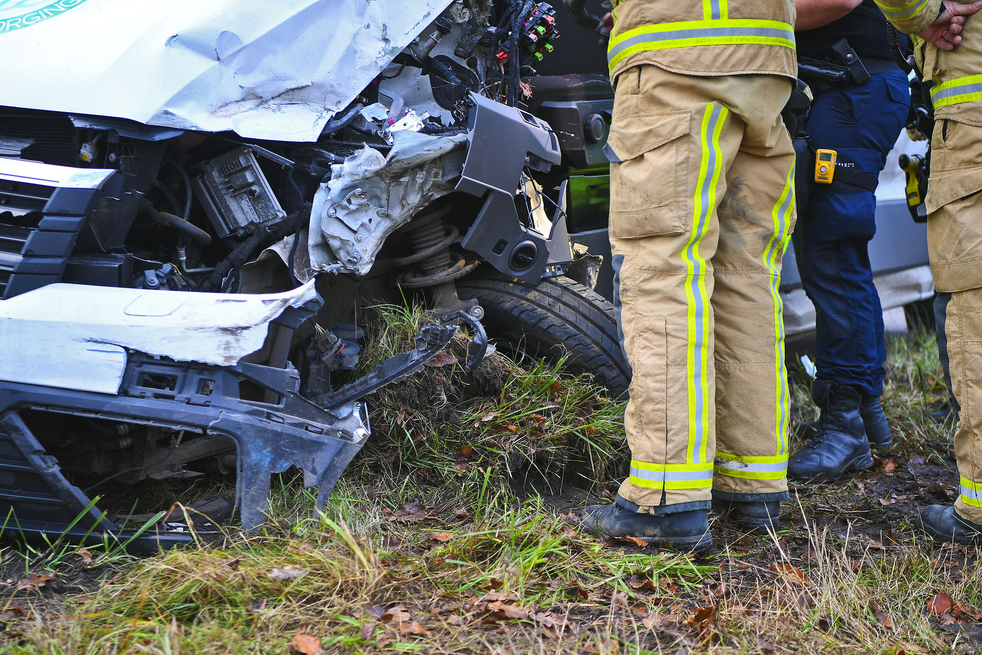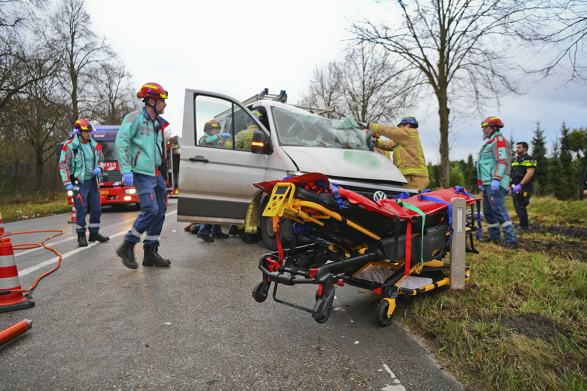 Weg dicht na ernstig ongeval, bestuurder busje bekneld