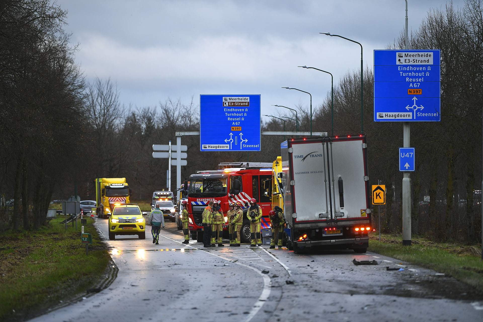 Een traumahelikopter landde ter plaatse, waarna de bestuurder van het bestelbusje met spoed naar het ziekenhuis in Tilburg is gebracht. Volgens eerste onderzoeken lijkt het erop dat het busje van zijn rijbaan is afgeweken richting Bergeijk. De vrachtwagenchauffeur bleef ongedeerd, maar de vrachtwagen liep aanzienlijke schade op, waaronder een gescheurde dieseltank.