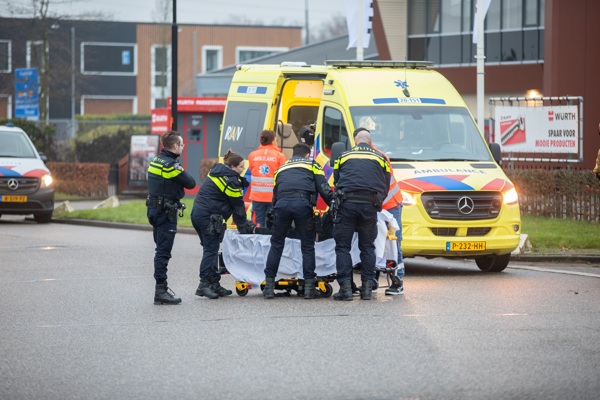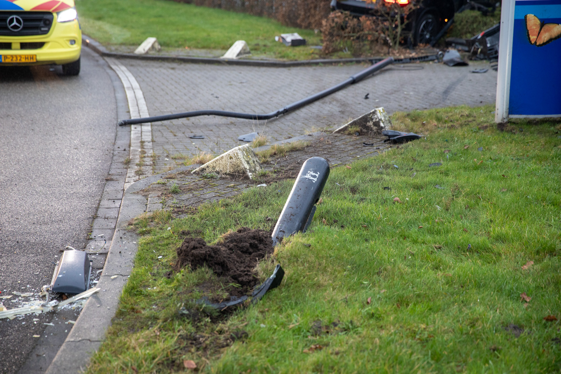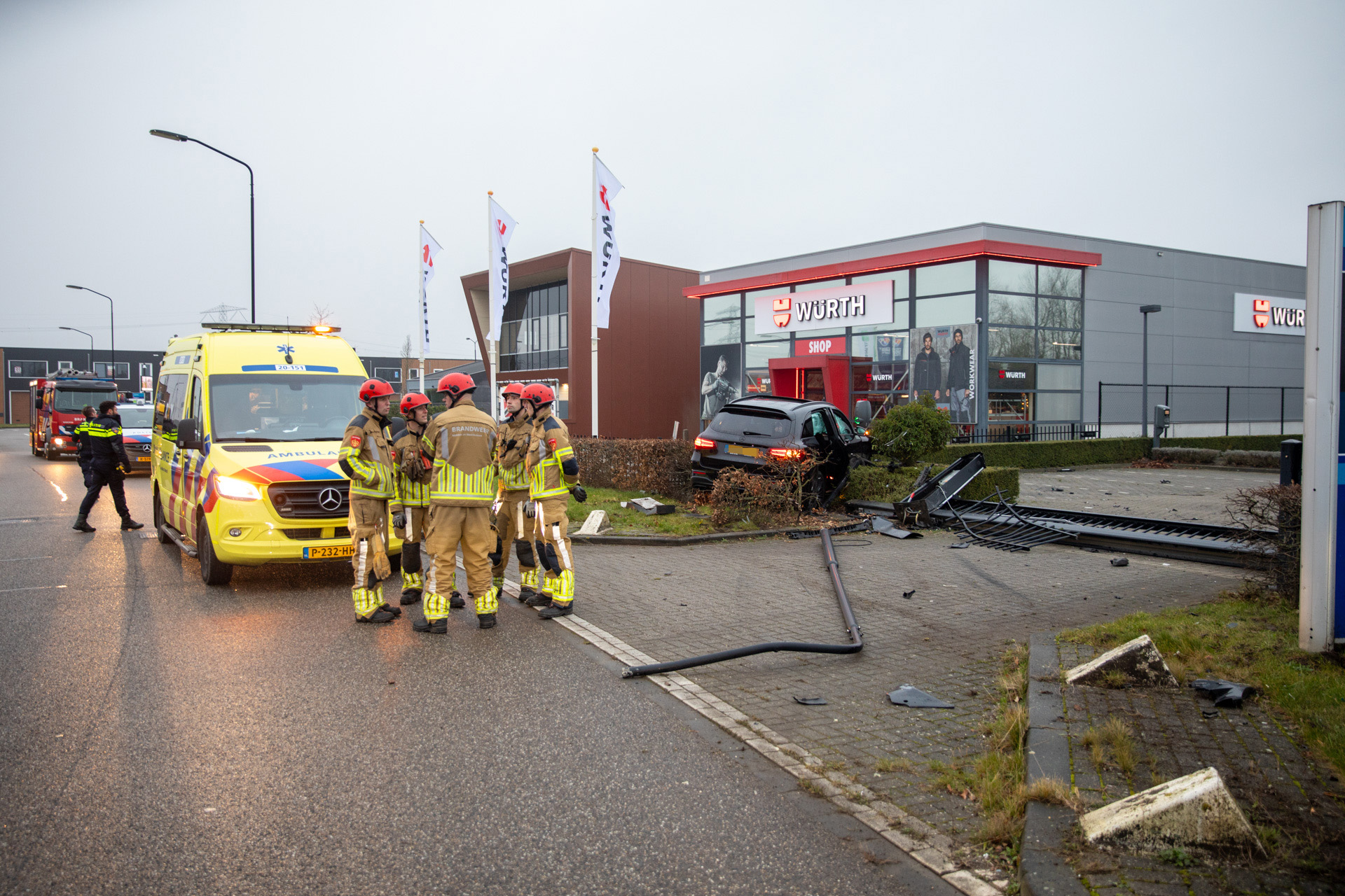 Meerdere hulpdiensten, waaronder de brandweer, kwamen ter plaatse. De automobilist, die vermoedelijk onder invloed reed, moest door de politie in bedwang worden gehouden en is aangehouden. Hij werd met een ambulance naar het ziekenhuis gebracht, begeleid door een politie-eenheid.