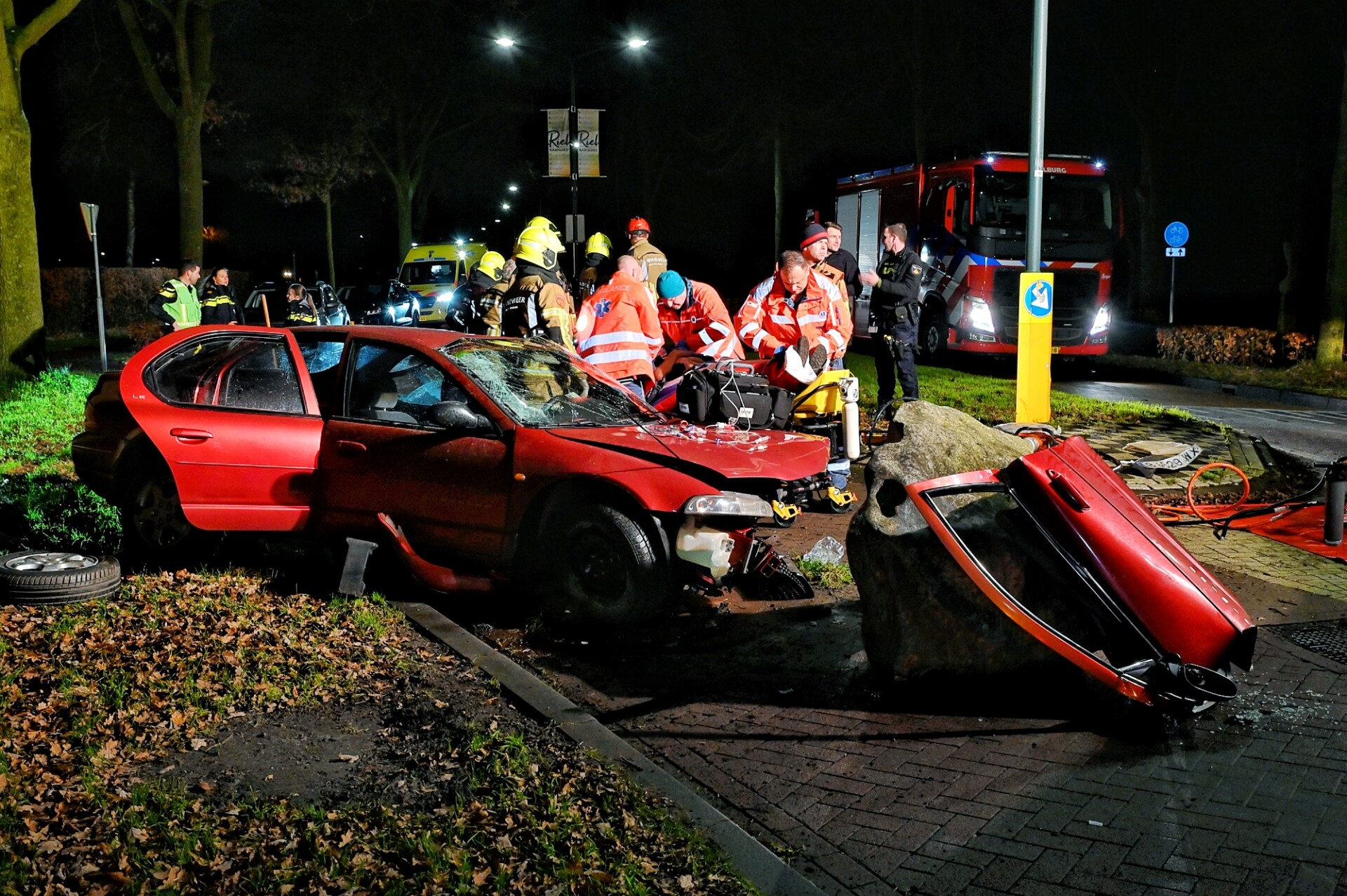 De weg is afgesloten voor onderzoek. Een bedrijf wordt ingeschakeld om de zware kei van de weg te verwijderen, en een bergingsbedrijf is onderweg om de auto af te voeren. De politie onderzoekt de toedracht van het ongeval.