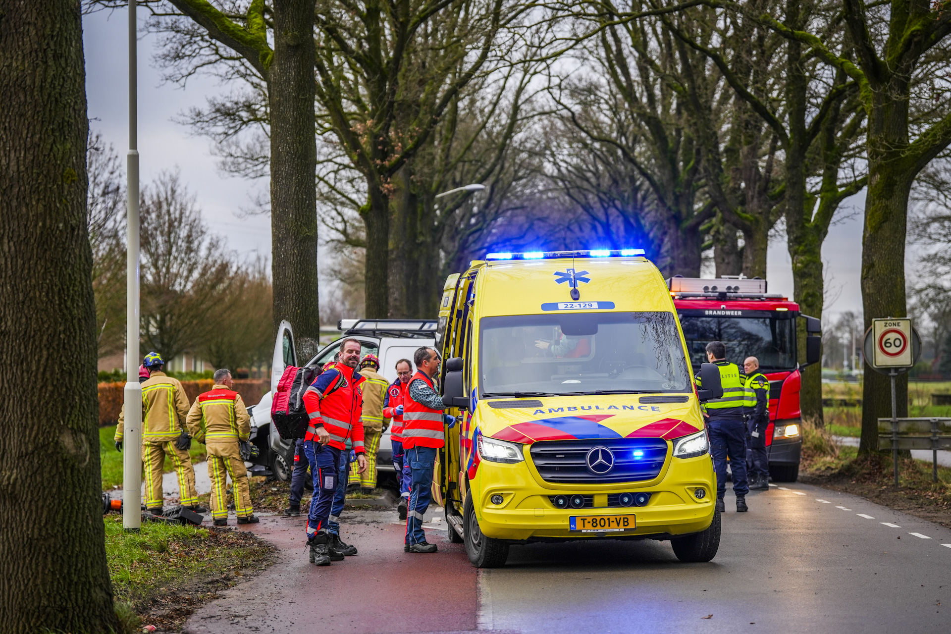 Bestuurder van bedrijfsbus zwaargewond bij botsing tegen boom