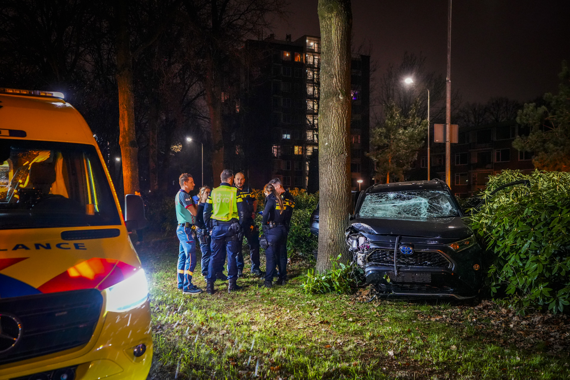 Geplaatst op 19 december 2024, om 07:44 uurEINDHOVEN – Een auto met twee inzittenden is vannacht op de Veldmaarschalk Montgomerylaan van de weg geraakt en heeft daarbij drie bomen geraakt. Het voertuig kwam zwaar beschadigd in de middenberm tot stilstand.