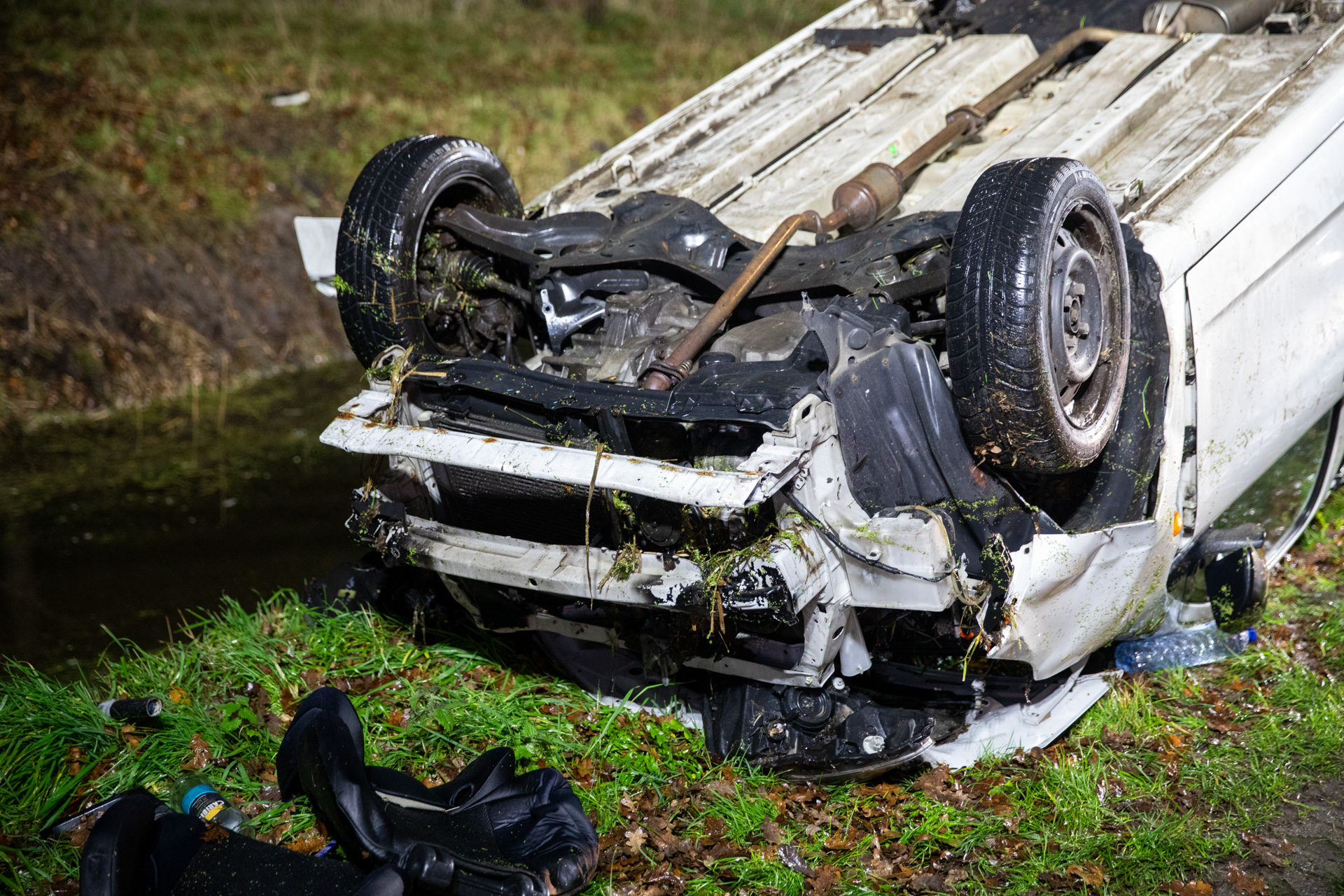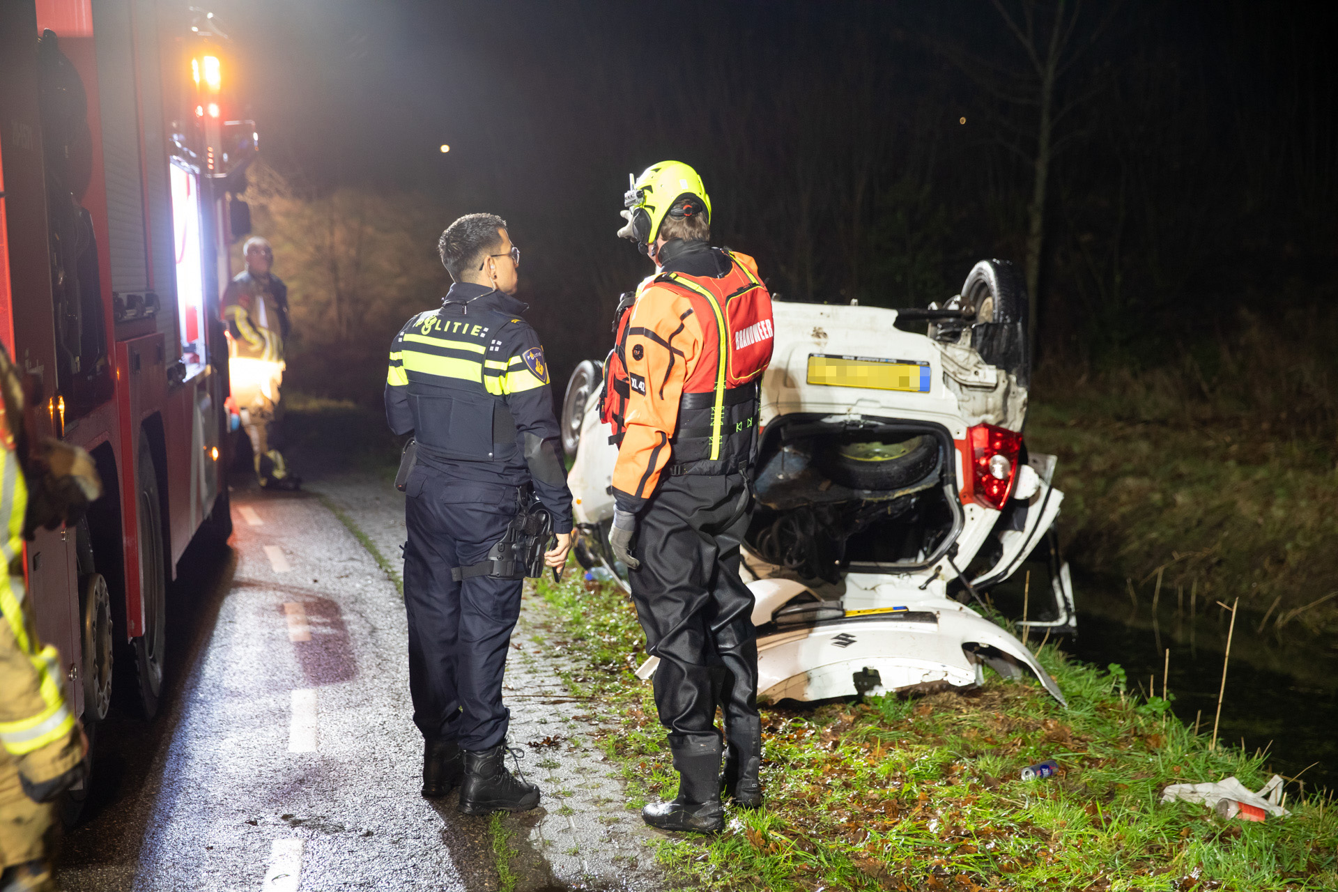 Auto op z’n kop in sloot, bestuurder spoorloos