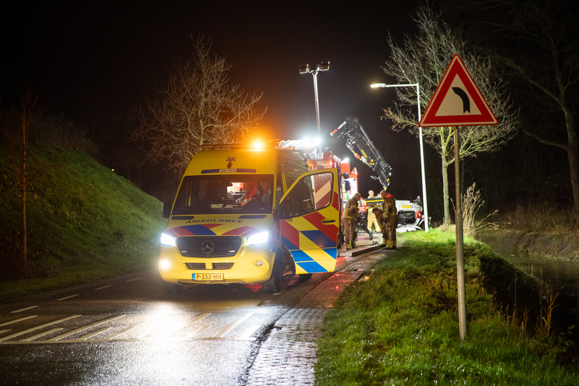 De auto is door de brandweer uit het water gehaald en wordt afgevoerd door een bergingsbedrijf. De politie onderzoekt de toedracht van het incident.