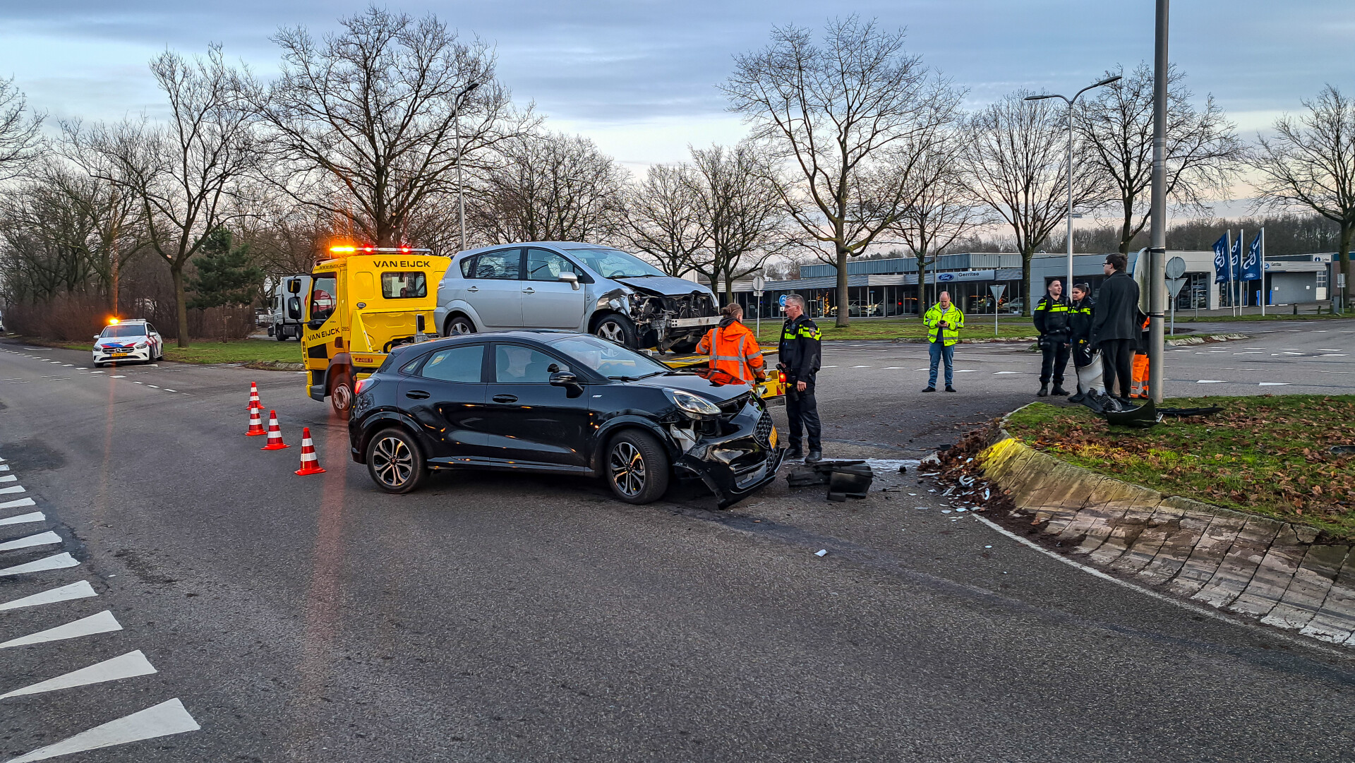 Hoewel meerdere inzittenden betrokken waren, raakte niemand gewond. Beide voertuigen liepen schade op en zijn afgesleept.