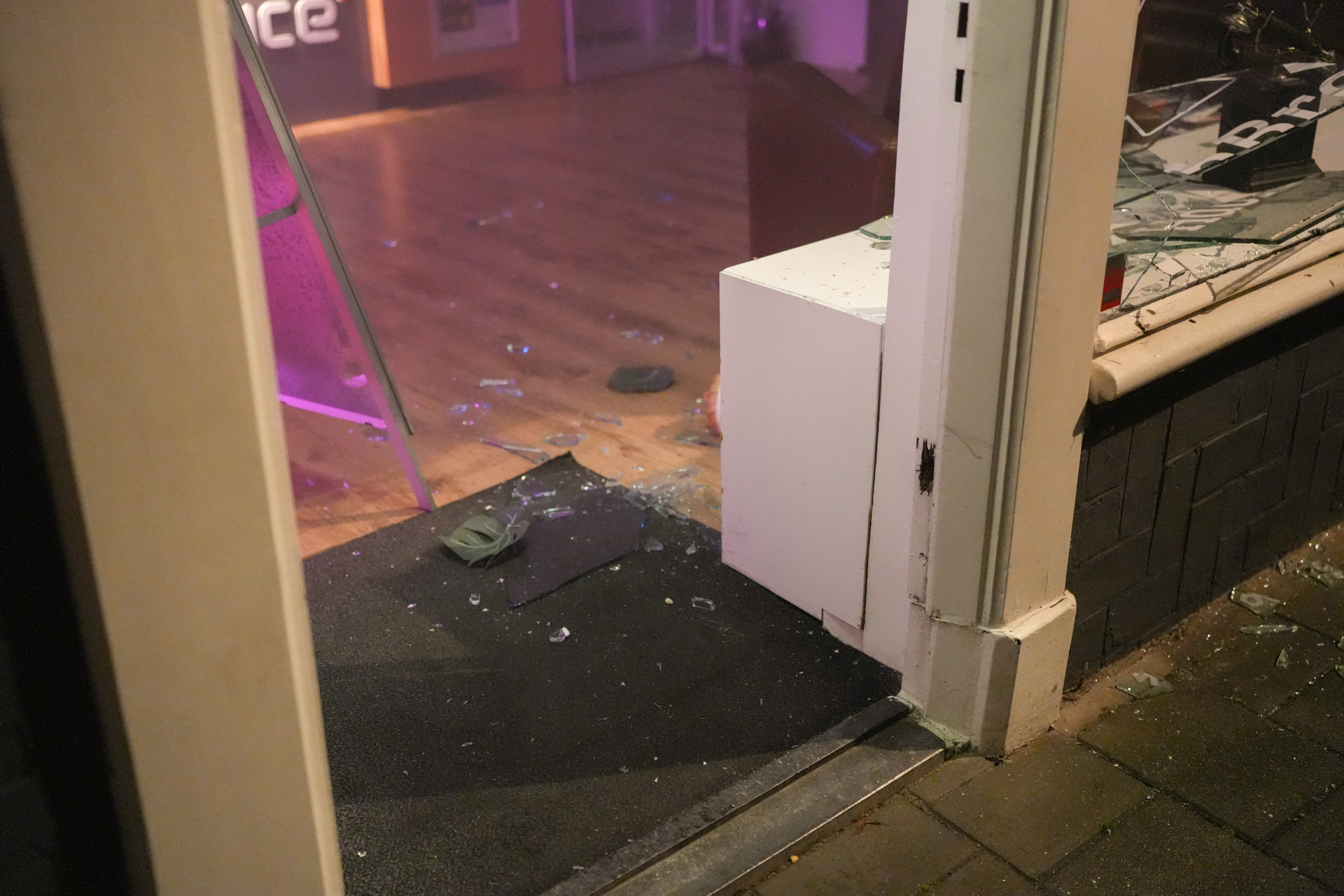 De winkel liep flinke schade op door het kapotte glas. De politie is een onderzoek gestart.