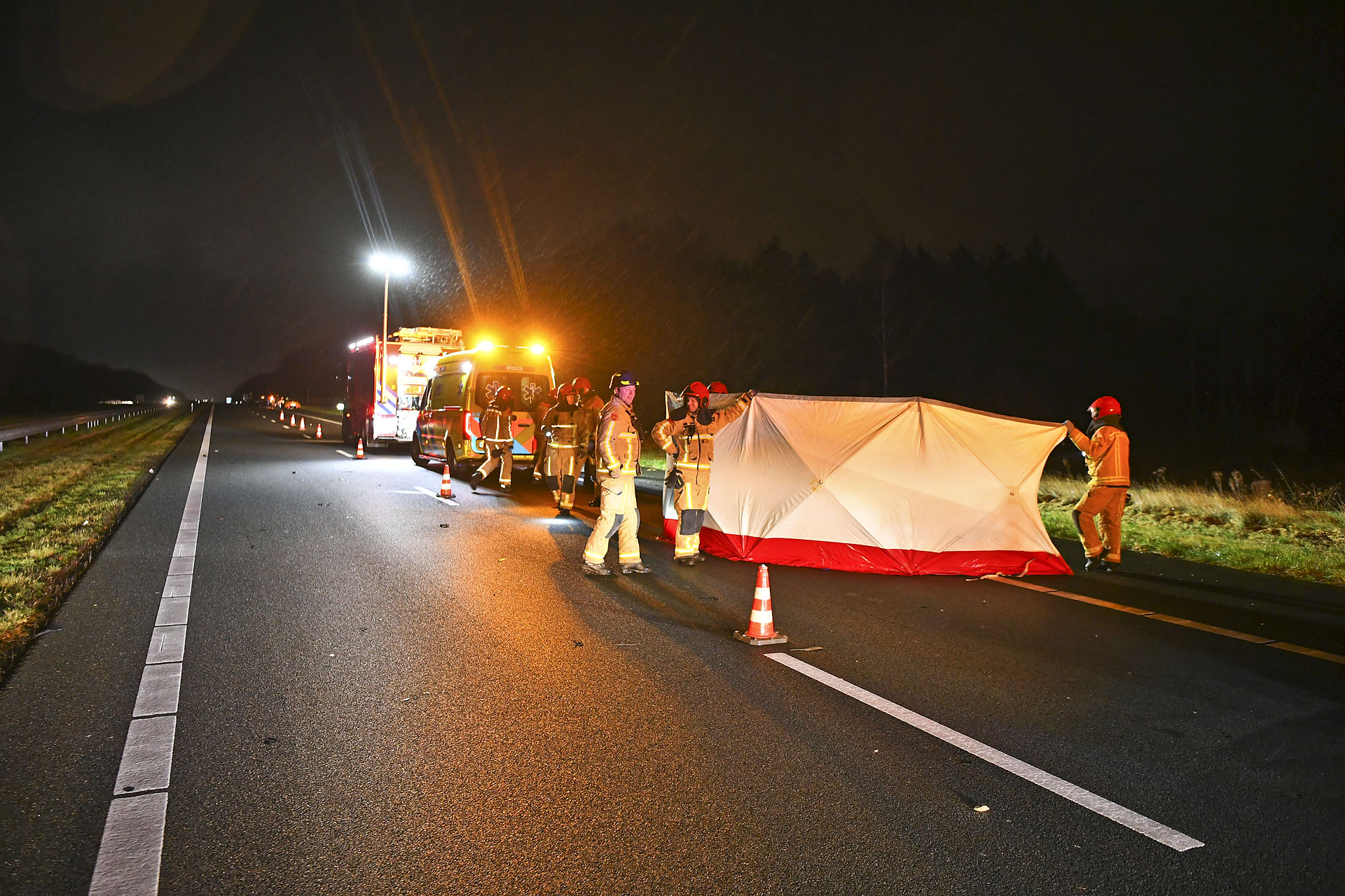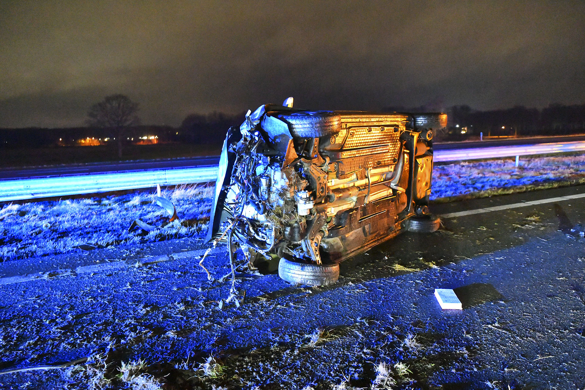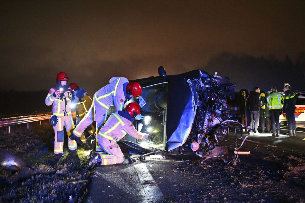 De andere drie inzittenden van de auto raakten lichtgewond. De 20-jarige bestuurder is aangehouden en zit voorlopig vast. De politie meldt dat hij niet onder invloed was. De snelweg werd na het incident afgesloten voor onderzoek. Verkeersspecialisten van het politieteam Verkeersongevallen Analyse (VOA) waren ter plaatse om de toedracht van het ongeval te onderzoeken.