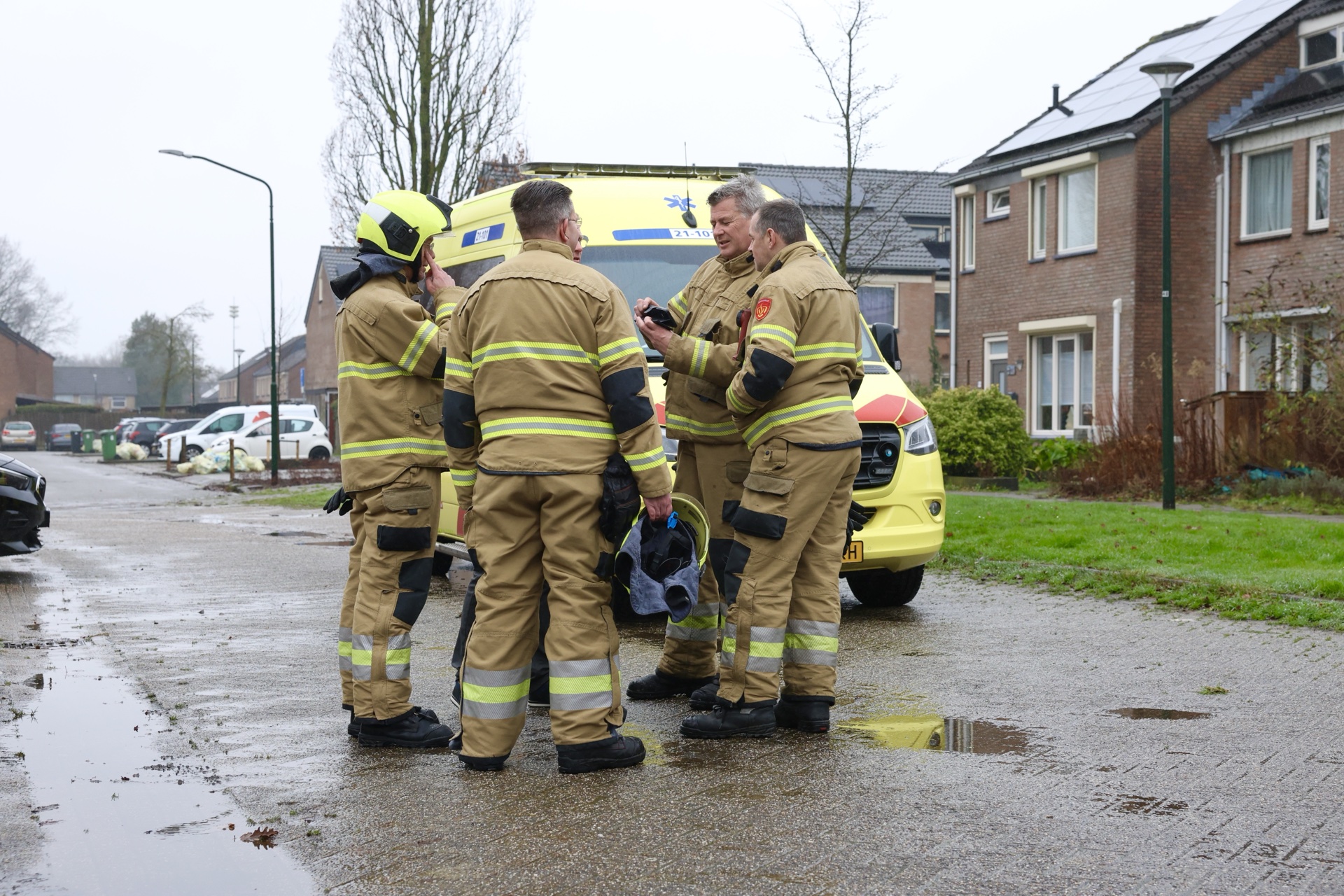 Een eerste bluspoging met een tuinslang wist de grootste vlammen te doven, waarna de brandweer het vuur volledig heeft geblust. Ook een ambulance kwam ter plaatse om personen die hadden geblust te controleren op mogelijke rookinhalatie.