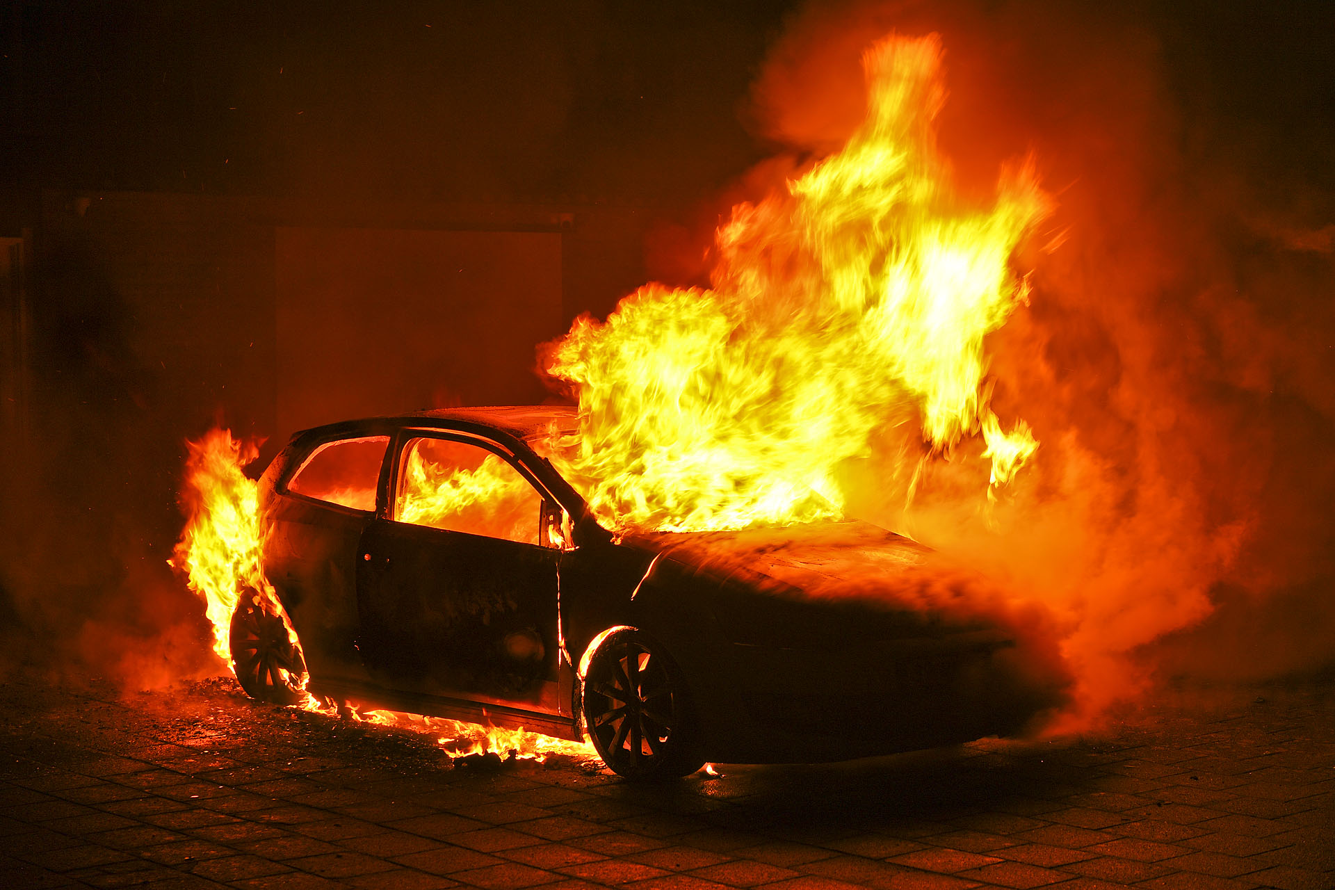 Auto in lichterlaaie na ontploffing van vuurwerk