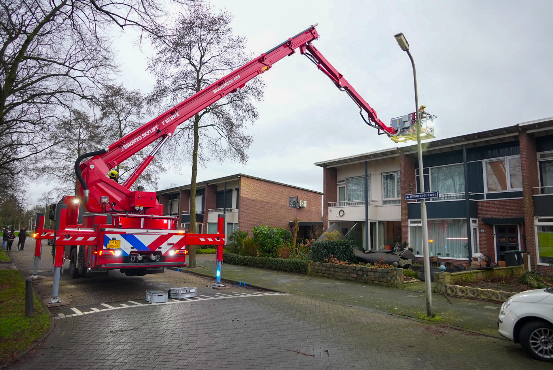 Na een harde klap ontdekten de bewoners dat de dakbedekking aan de voorkant van het huis was beschadigd. De brandweer verwijderde met een hoogwerker het loszittende dakleer.