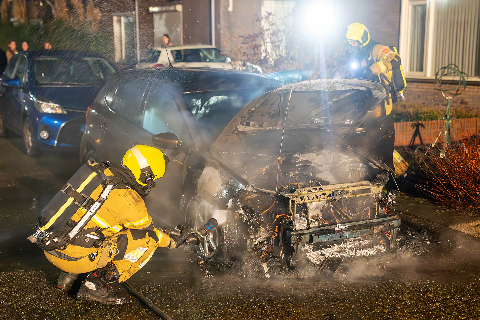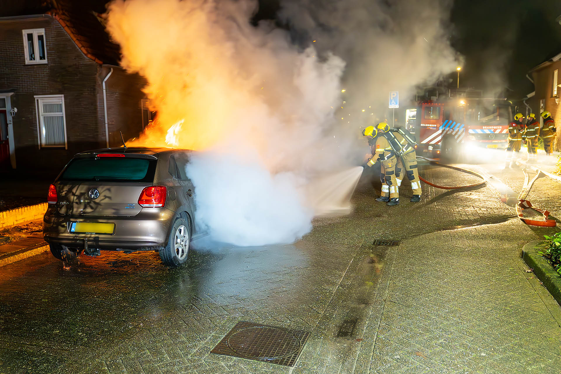 Rond 2.50 uur werd een bewoner gewekt door twee harde knallen en zag een brandende auto in de straat. Hij belde direct 112. Bij aankomst stond de Volkswagen Polo al volledig in brand en was niet meer te redden.