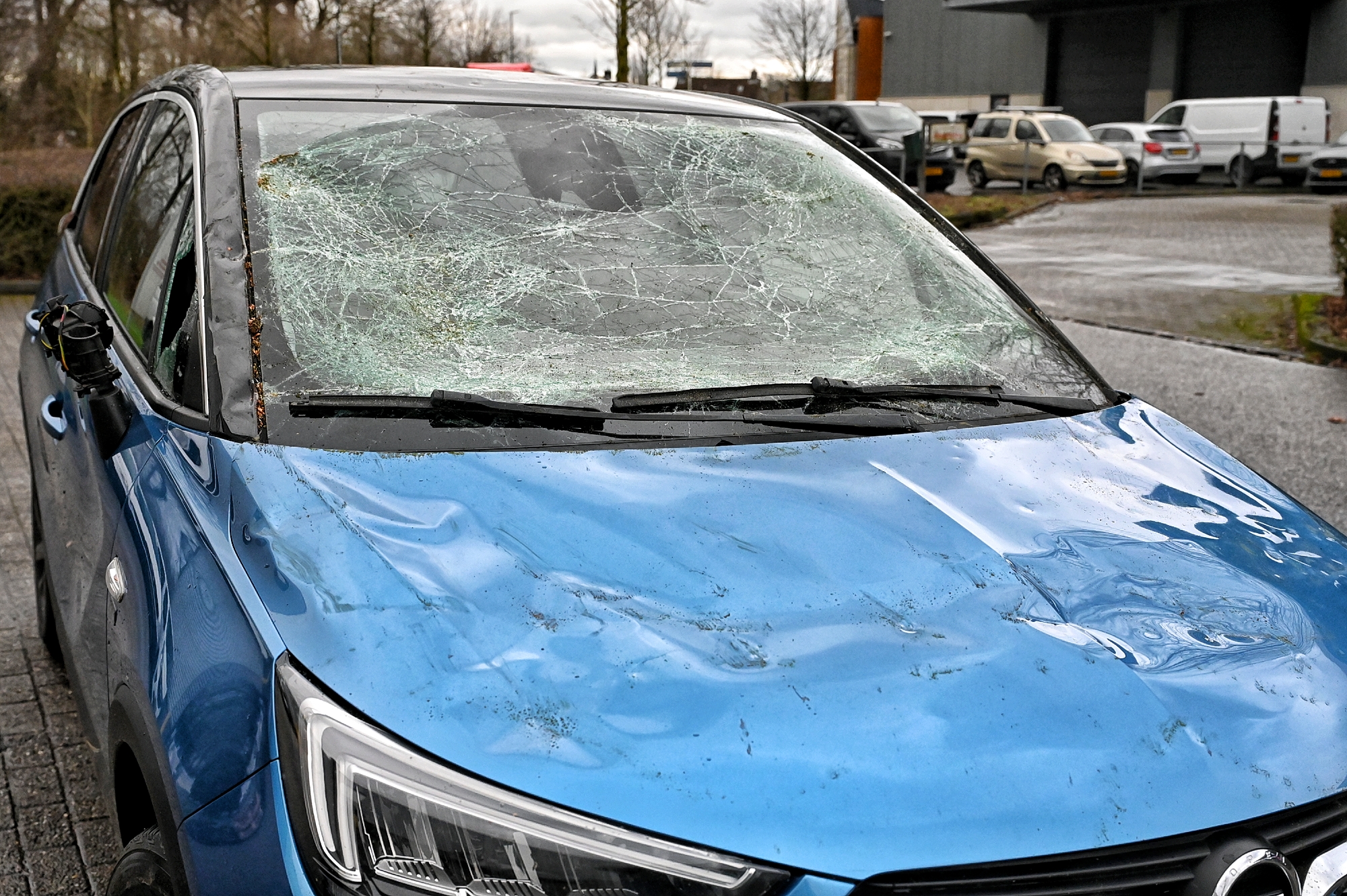 De boom brak door de harde wind en kwam bovenop het voertuig terecht. Hierbij raakte het raam volledig vernield en liep de motorkap forse schade op. De bestuurder kon zelfstandig uit de auto komen en werd niet gewond.