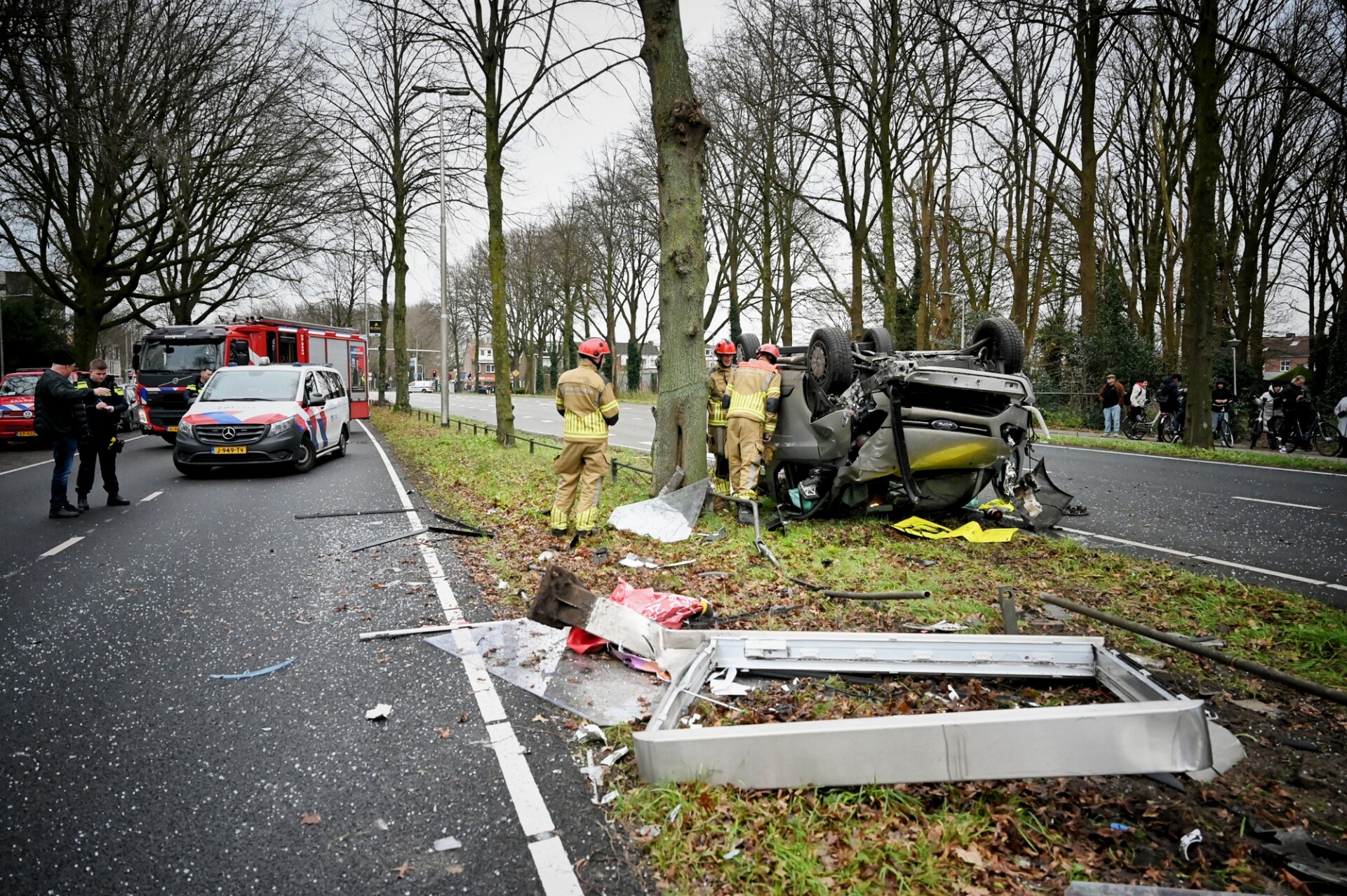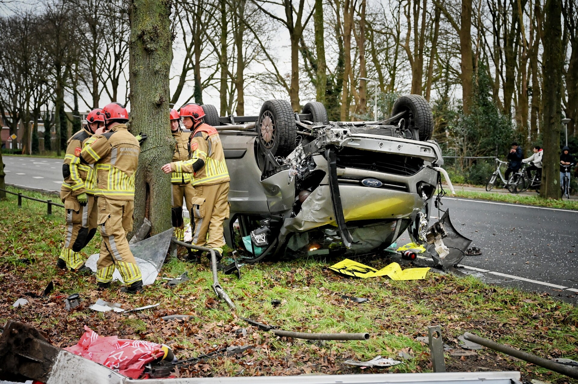 Het incident gebeurde rond 15.10 uur nabij de kruising met de Broekhovenseweg. De bestelbus reed vanuit de richting van het Willem II-stadion toen de bestuurder de controle over het stuur verloor. Het voertuig botste tegen een reclamezuil in de middenberm, raakte een boom en sloeg over de kop.
