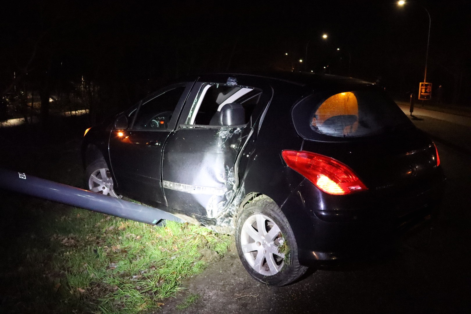 De bestuurder had geluk dat de auto met de achterkant tegen de paal klapte. Het voertuig, dat eigendom is van zijn moeder, is door een takelbedrijf opgehaald.