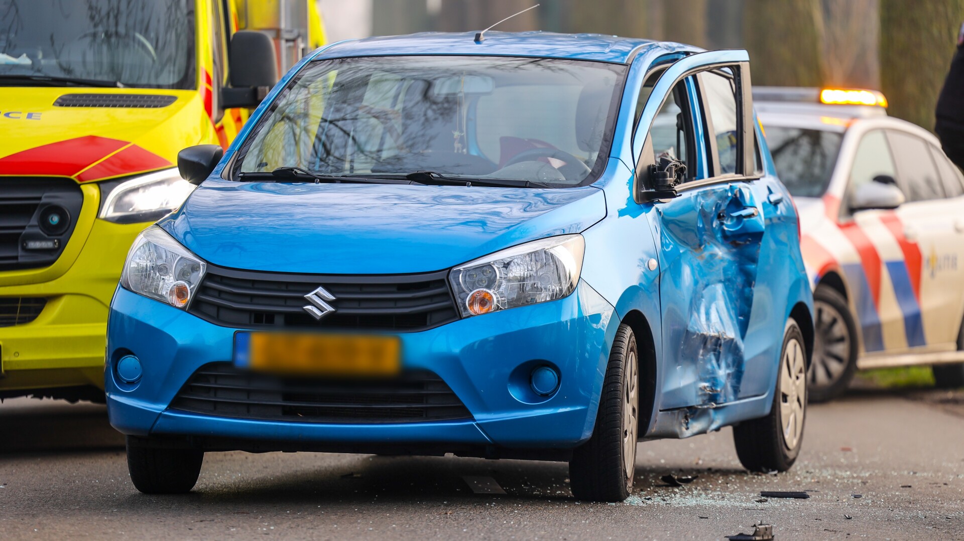 De bestuurster van de auto, wiens deur klem zat, werd bevrijd door de politie en behandeld in de ambulance. Of zij naar het ziekenhuis is vervoerd, is onbekend.