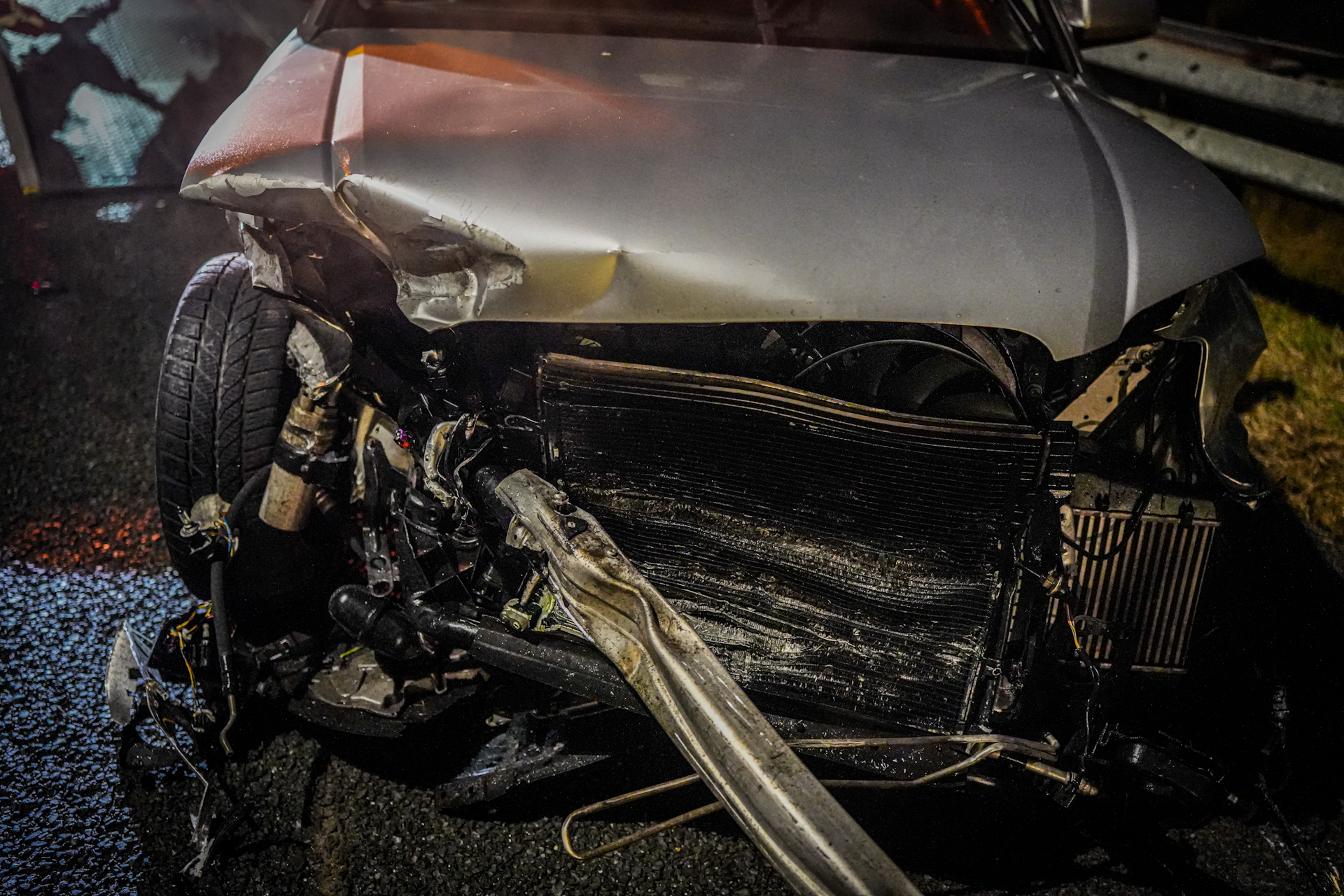 De auto liep flinke schade op en is door een takelwagen weggesleept. Rijkswaterstaat sloot tijdelijk één rijbaan af.