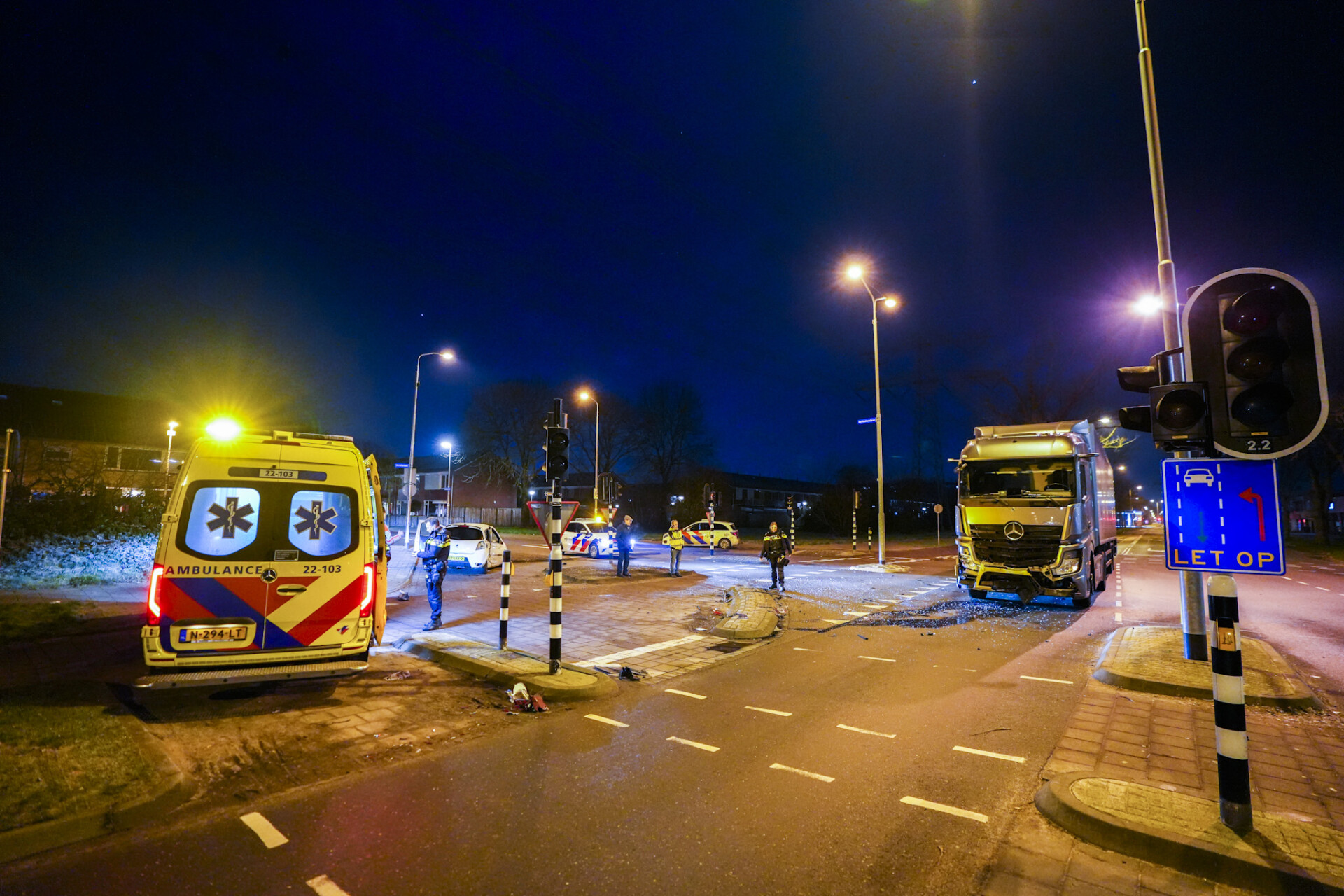 De vrachtwagen kon niet op tijd stoppen en ramde de auto in de flank. De bestuurster van de auto is met een ambulance naar het ziekenhuis gebracht. De vrachtwagenchauffeur bleef ongedeerd, maar zijn truck raakte beschadigd en kon niet verder.