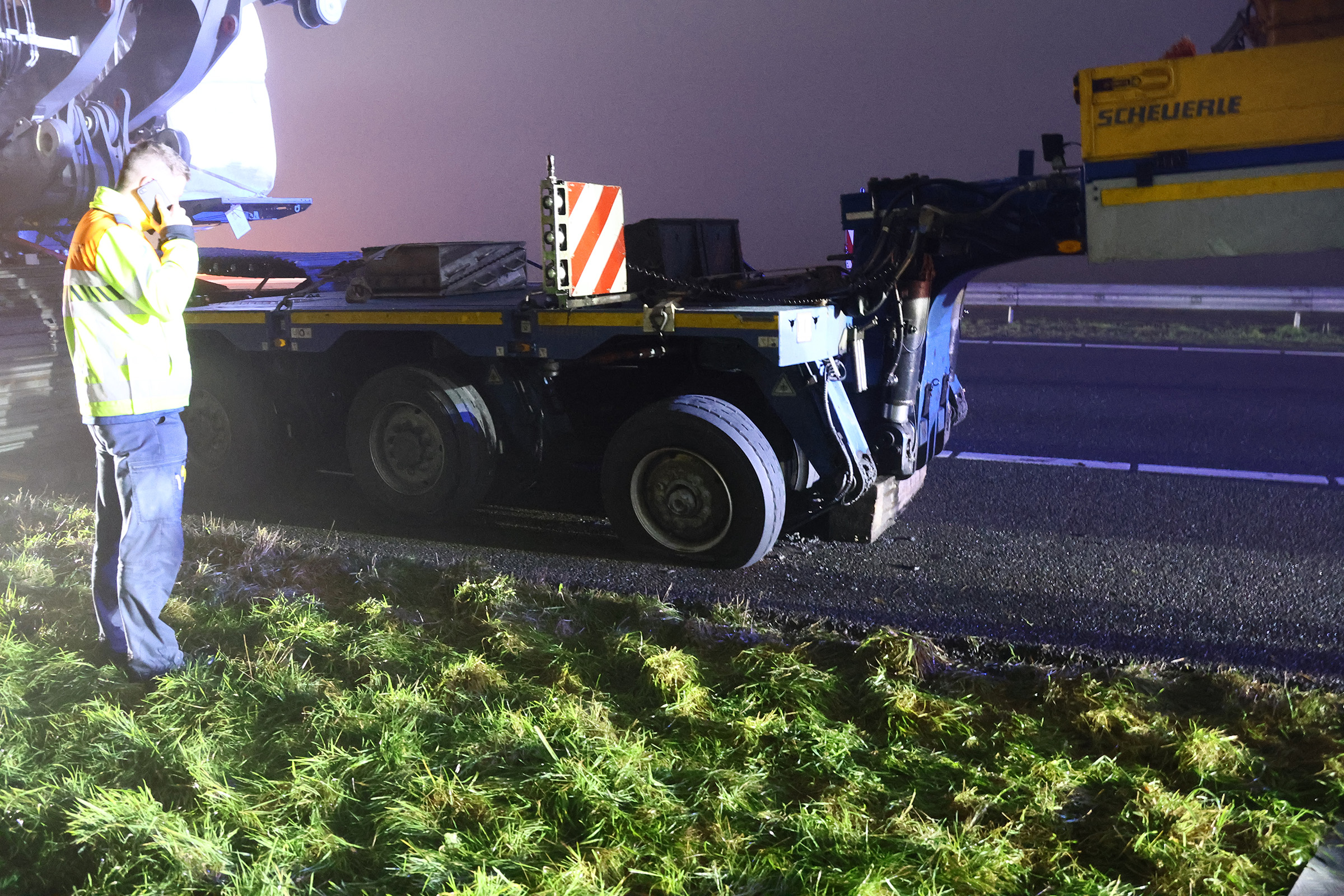Na reparaties kon de combinatie met gepaste snelheid en onder begeleiding van Rijkswaterstaat en transportbegeleiding naar een tankstation in Haps rijden. Daar wordt gekeken hoe het materieel verder vervoerd kan worden. Tijdens het incident waren twee rijstroken afgesloten.