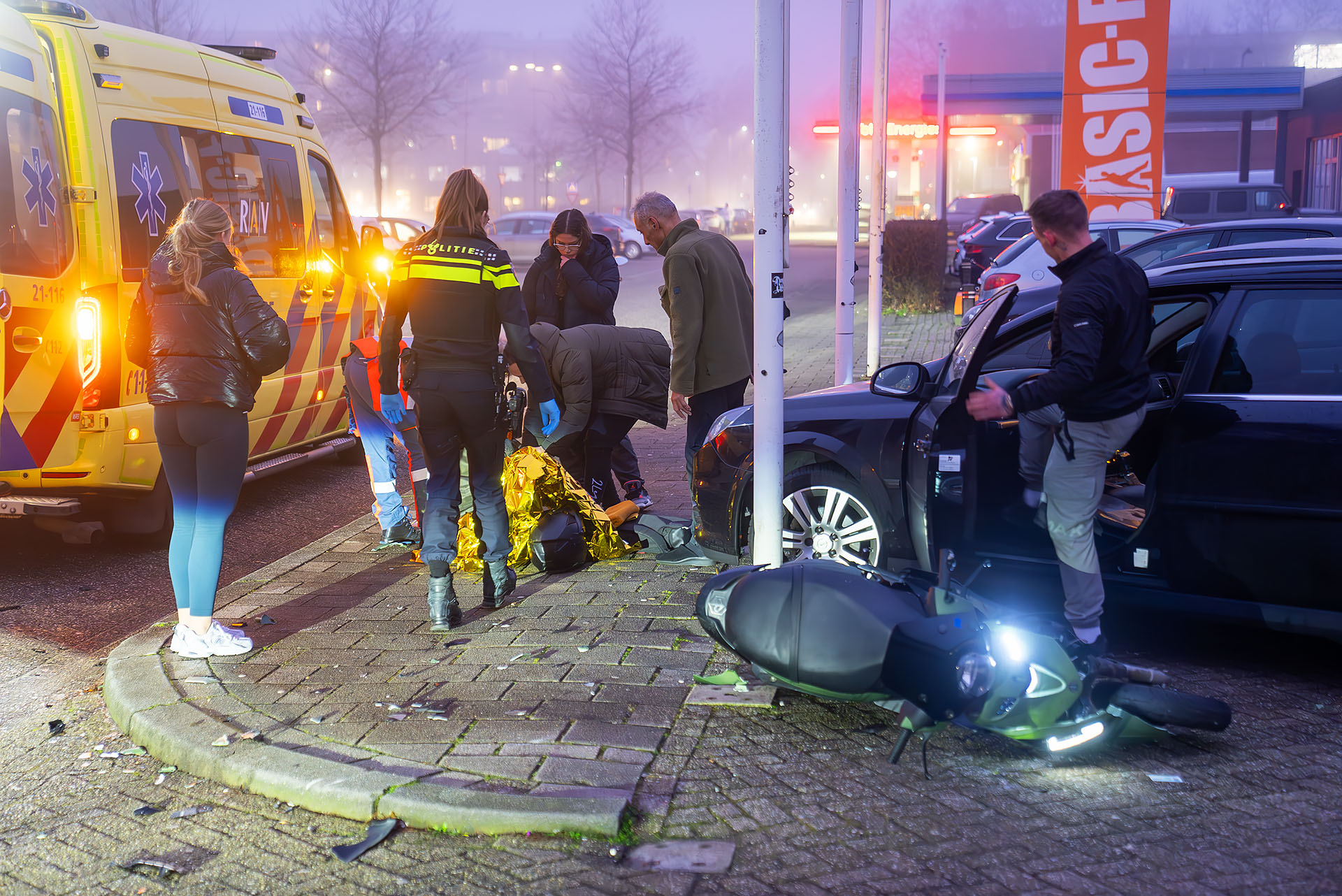 De scooterrijder liep bij het ongeval in ieder geval beenletsel op. Hij is met een ambulance naar het ziekenhuis gebracht voor verdere behandeling. Over de toestand van de automobilist is niets gemeld.