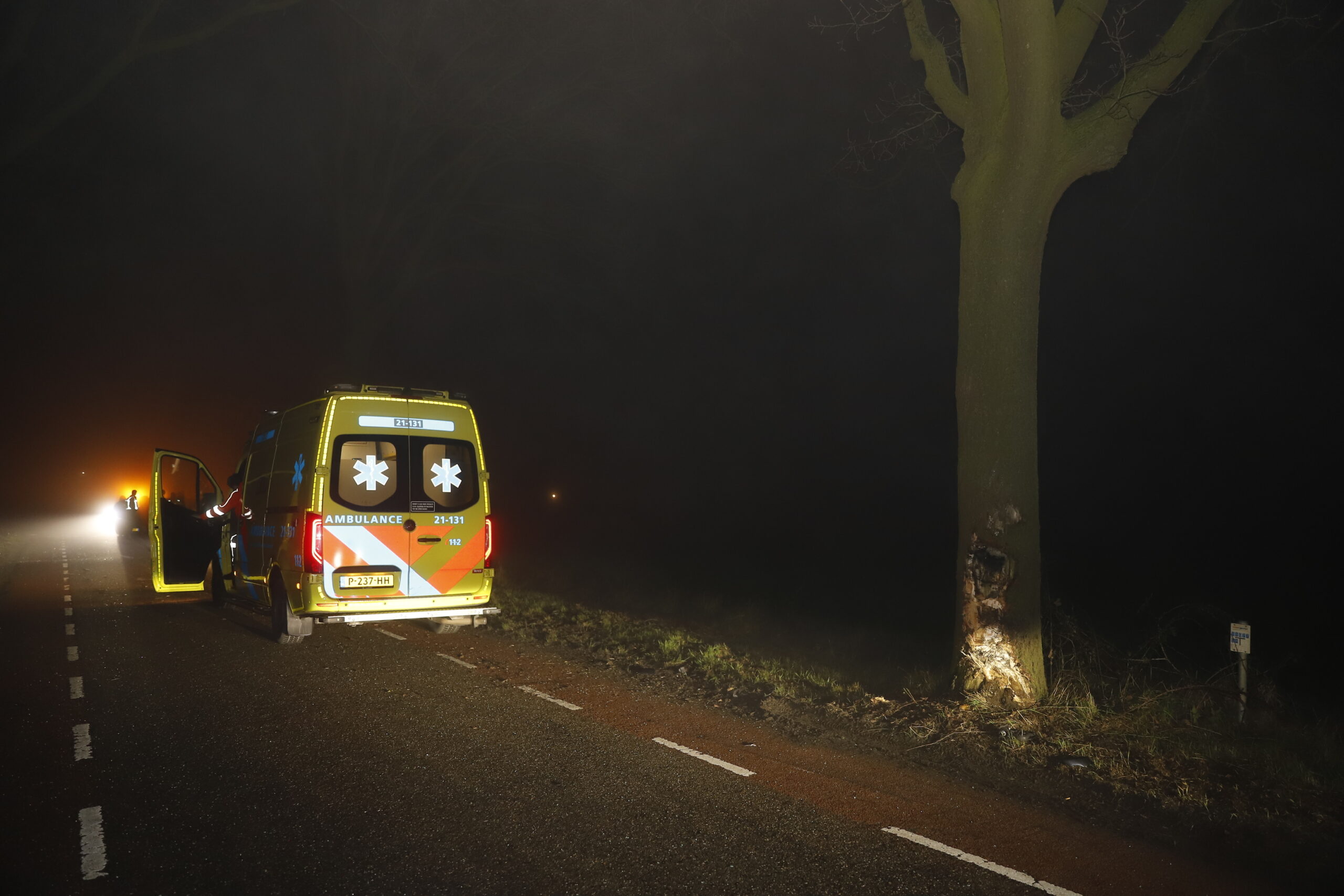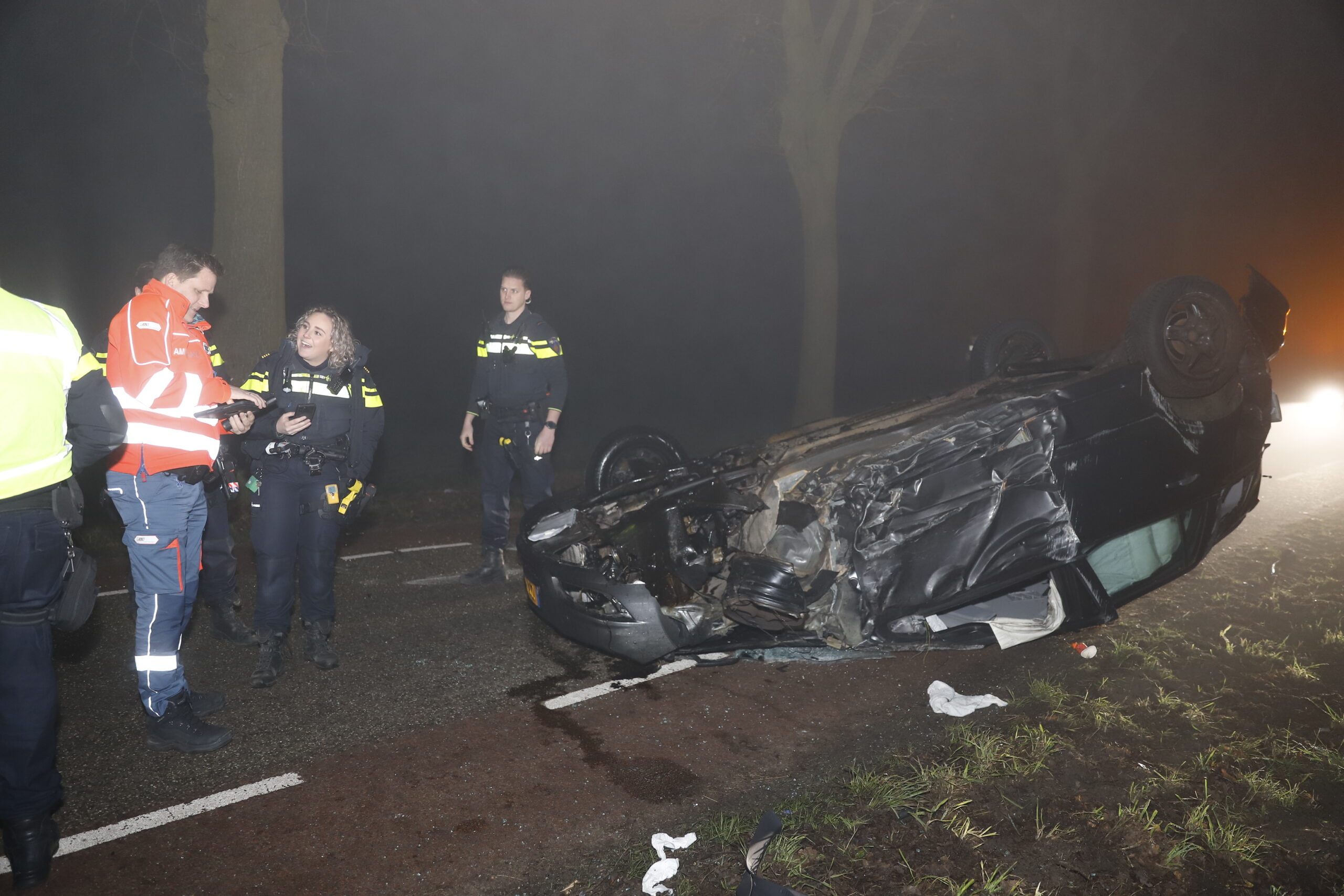Auto vliegt over de kop en botsing tegen boom, bestuurder wandelt naar huis