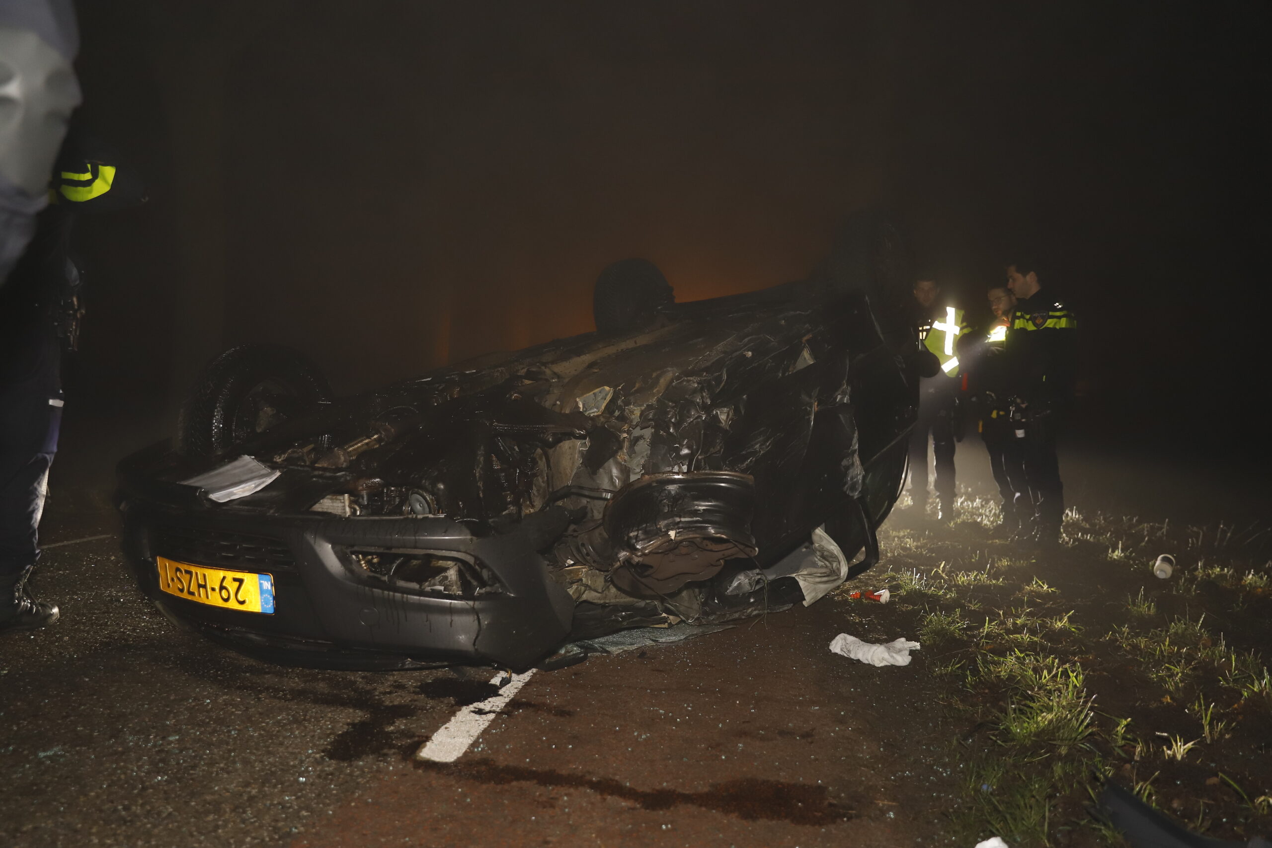 De zwaar beschadigde auto is afgesleept, en de weg is inmiddels weer vrijgegeven.