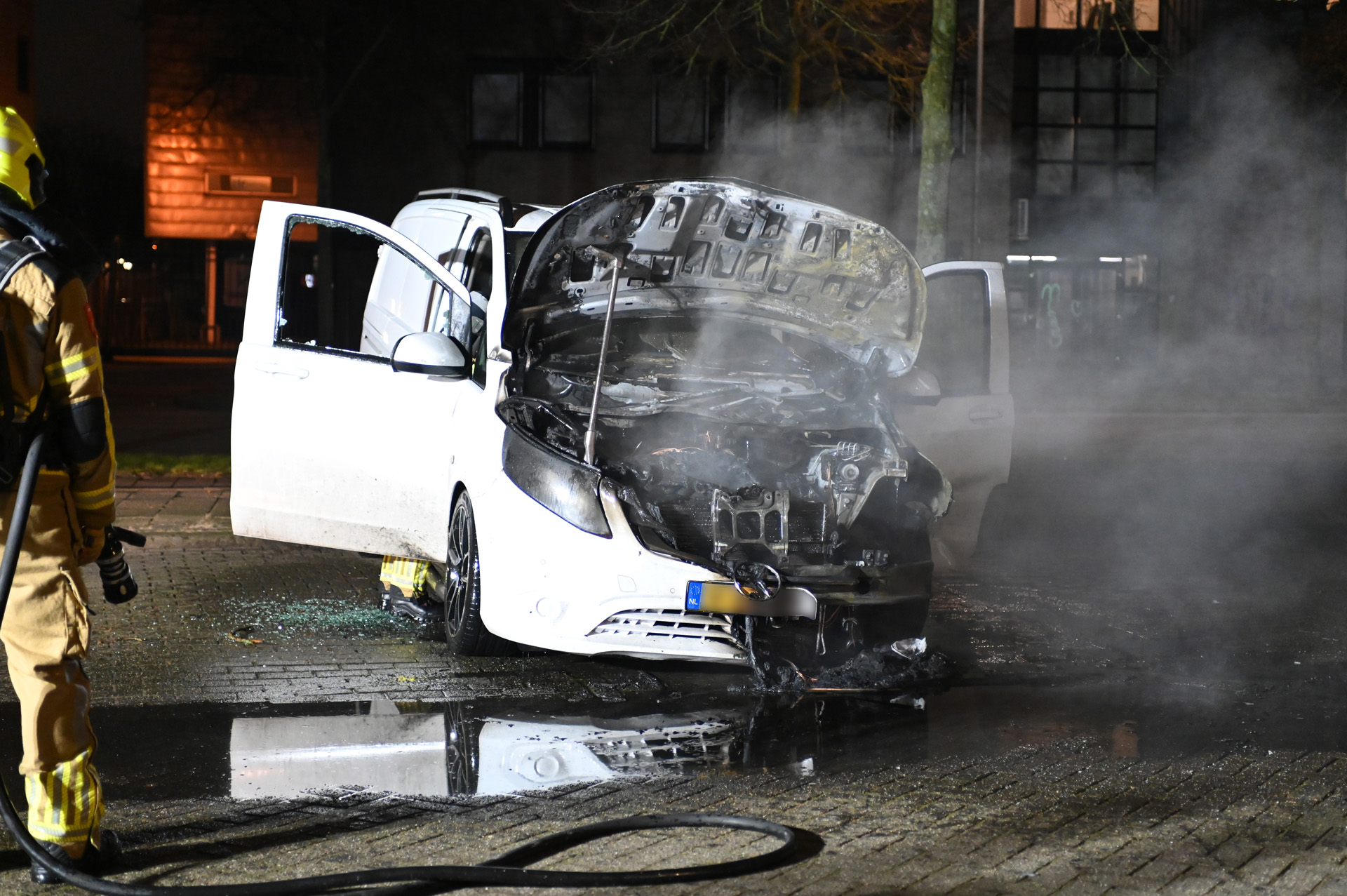 De brandweer was snel ter plaatse, maar de voorzijde van de bestelbus brandde volledig uit. Hoe de brand is ontstaan, is nog onduidelijk. Mogelijk wordt brandstichting niet uitgesloten.