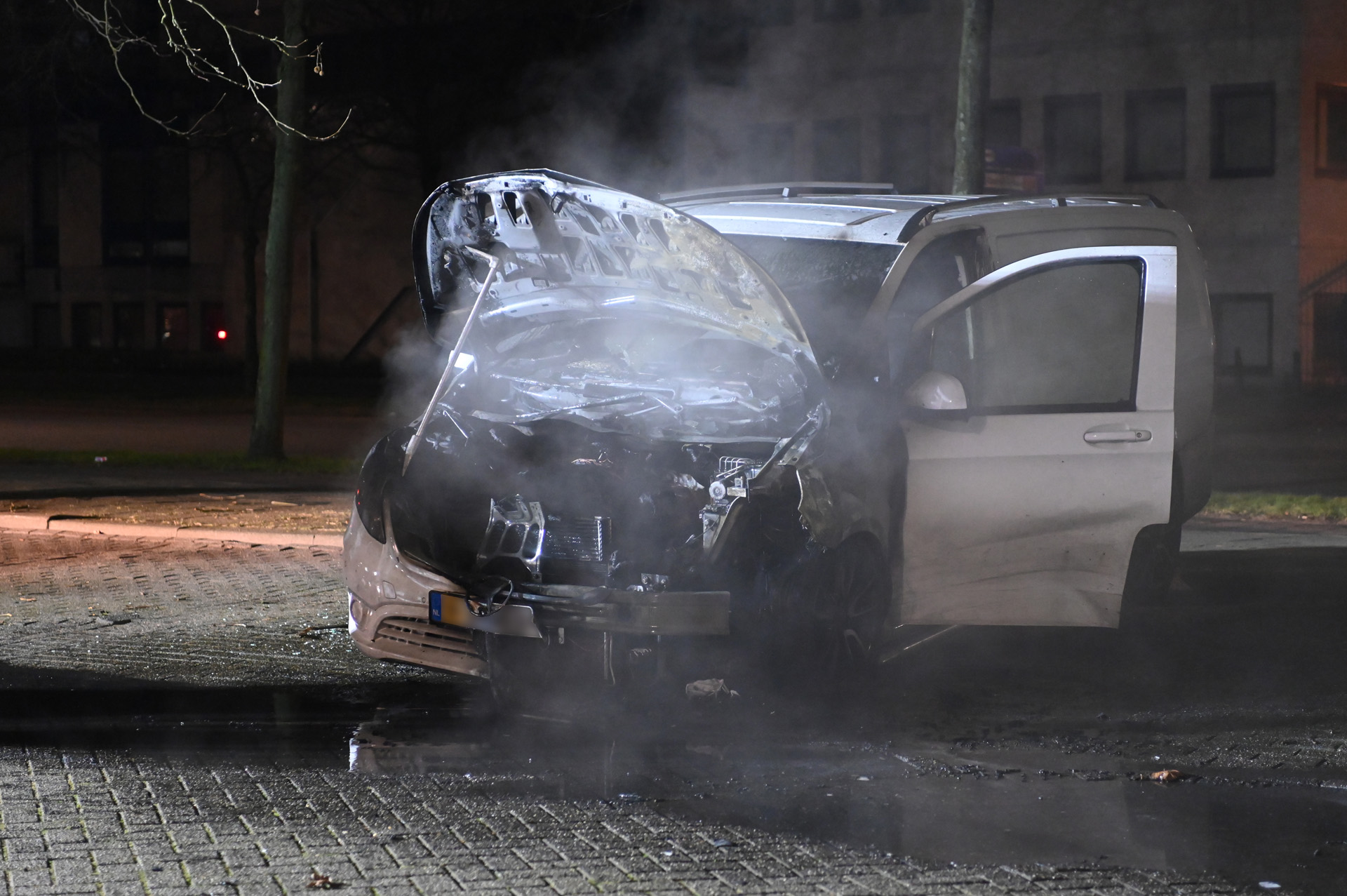 Geparkeerde bestelbus door brand verwoest