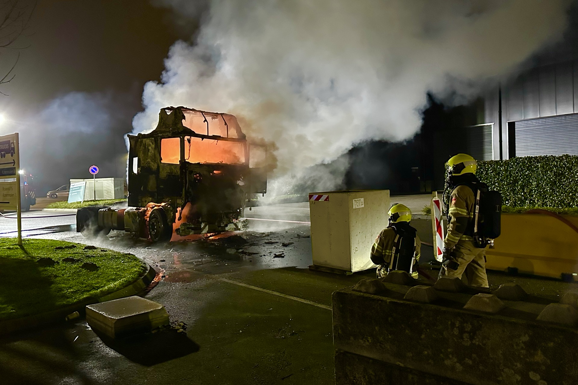 De truck brandde volledig uit. Er zijn geen meldingen van gewonden. De oorzaak van de brand wordt onderzocht.