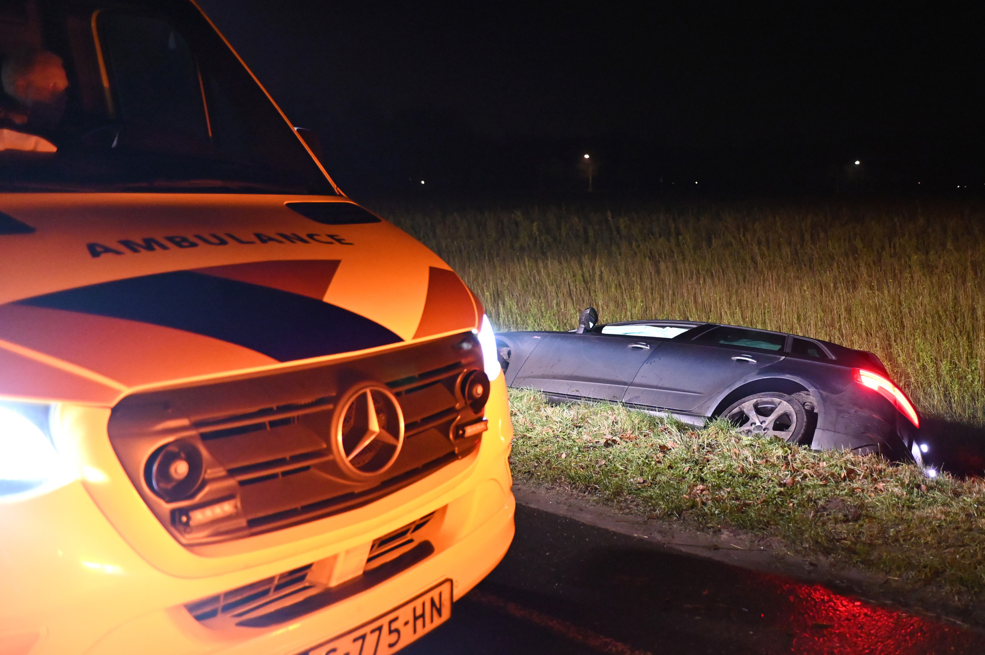 De bestuurder werd gecontroleerd door ambulancepersoneel, maar raakte niet gewond. Hij werd later door familie opgehaald.