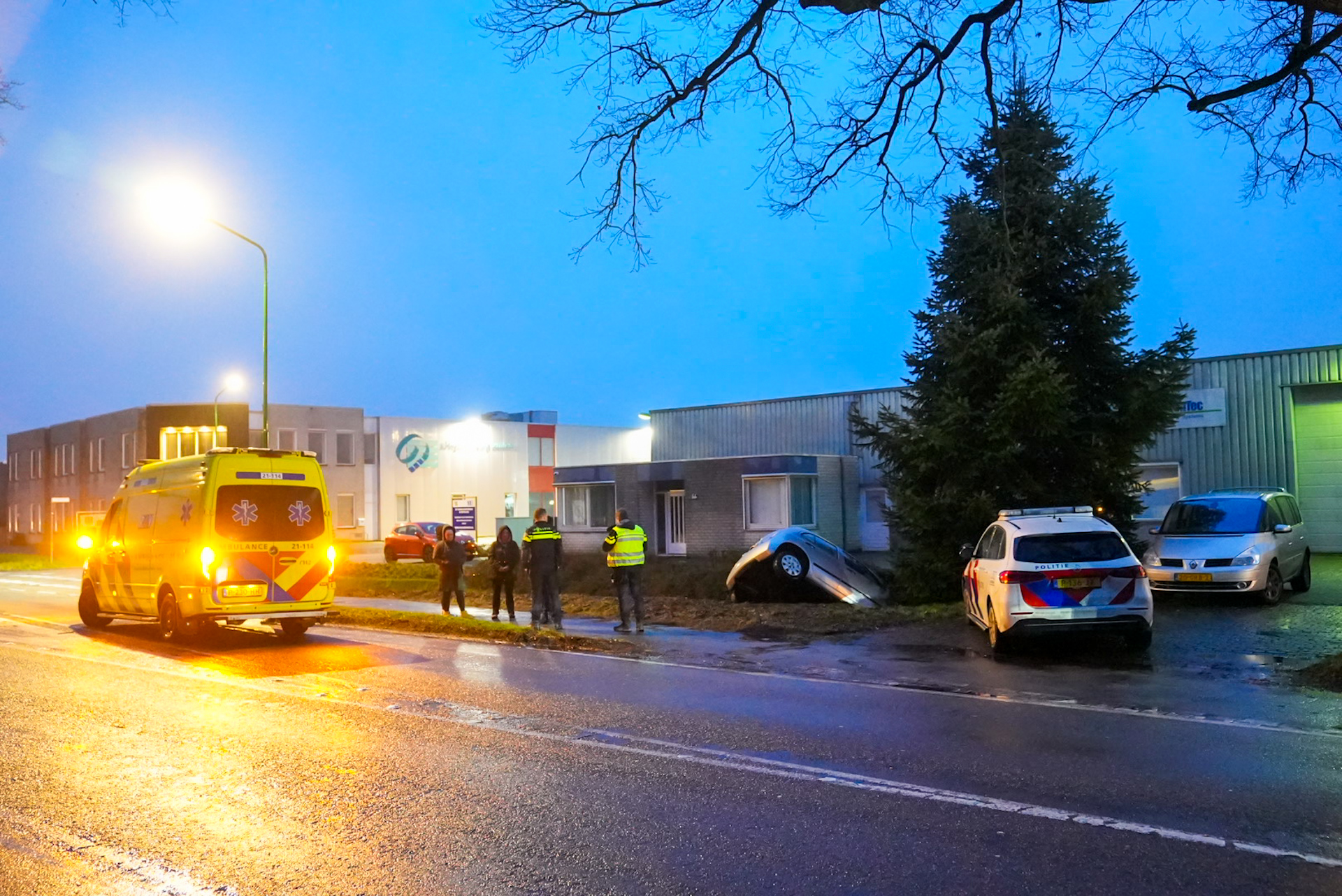 Auto belandt in sloot, hulpdiensten groots uitgerukt