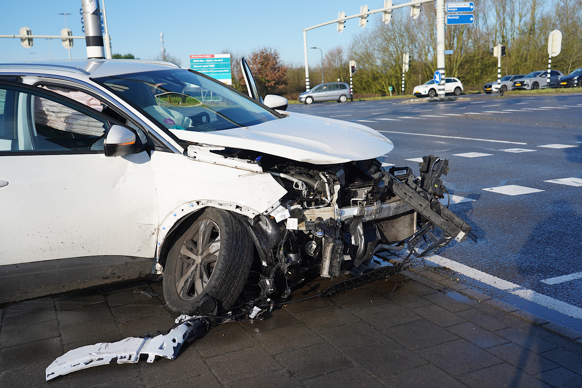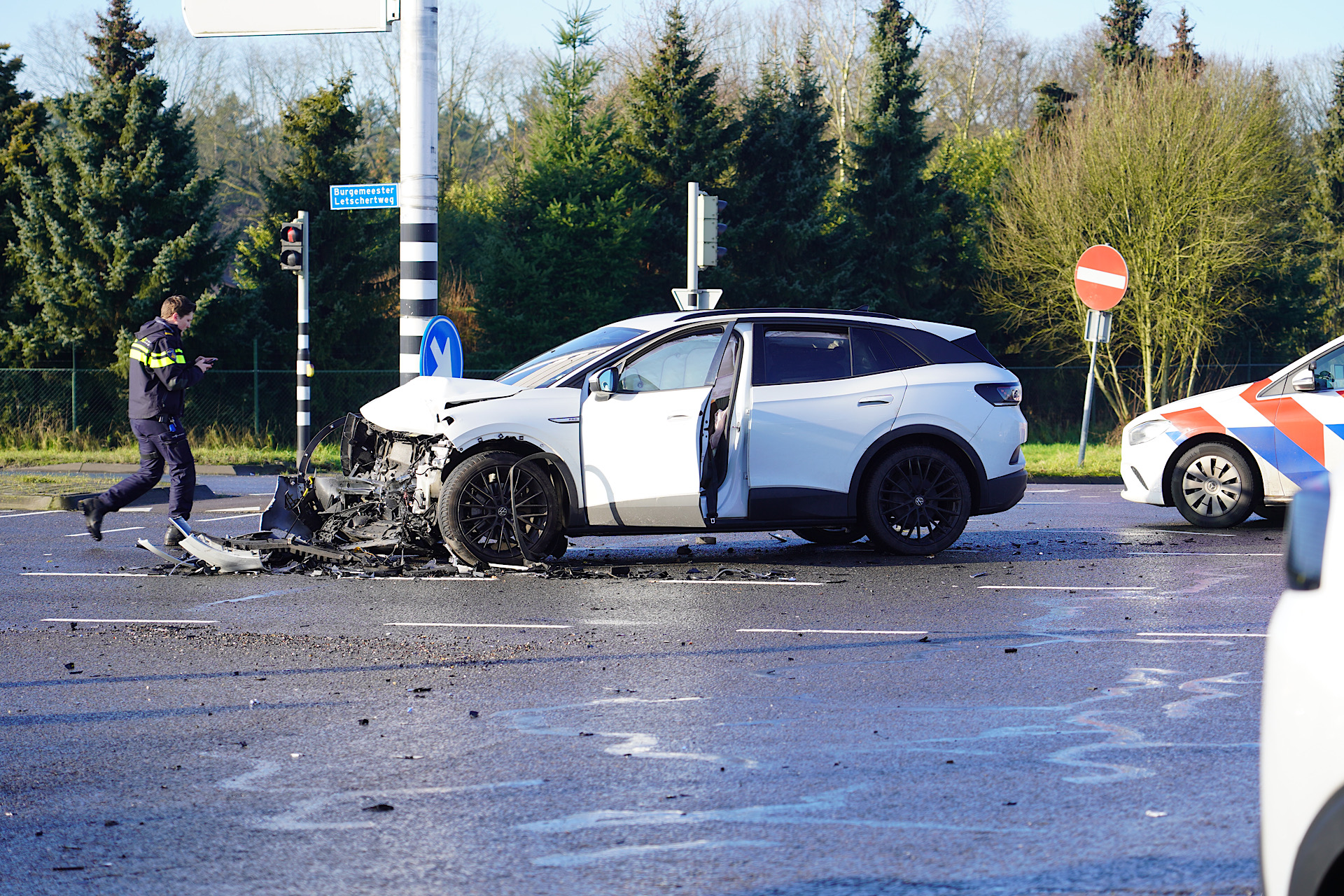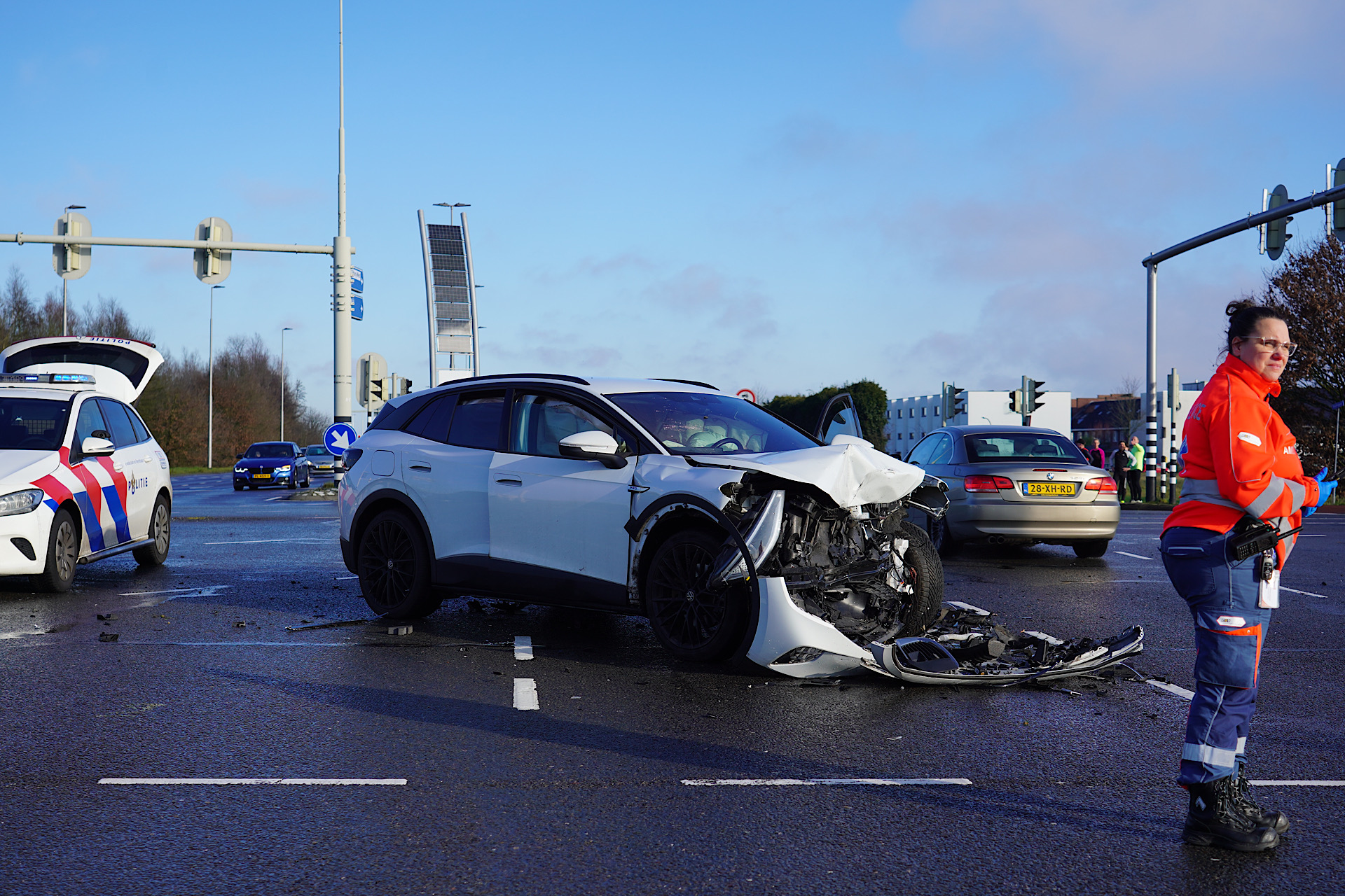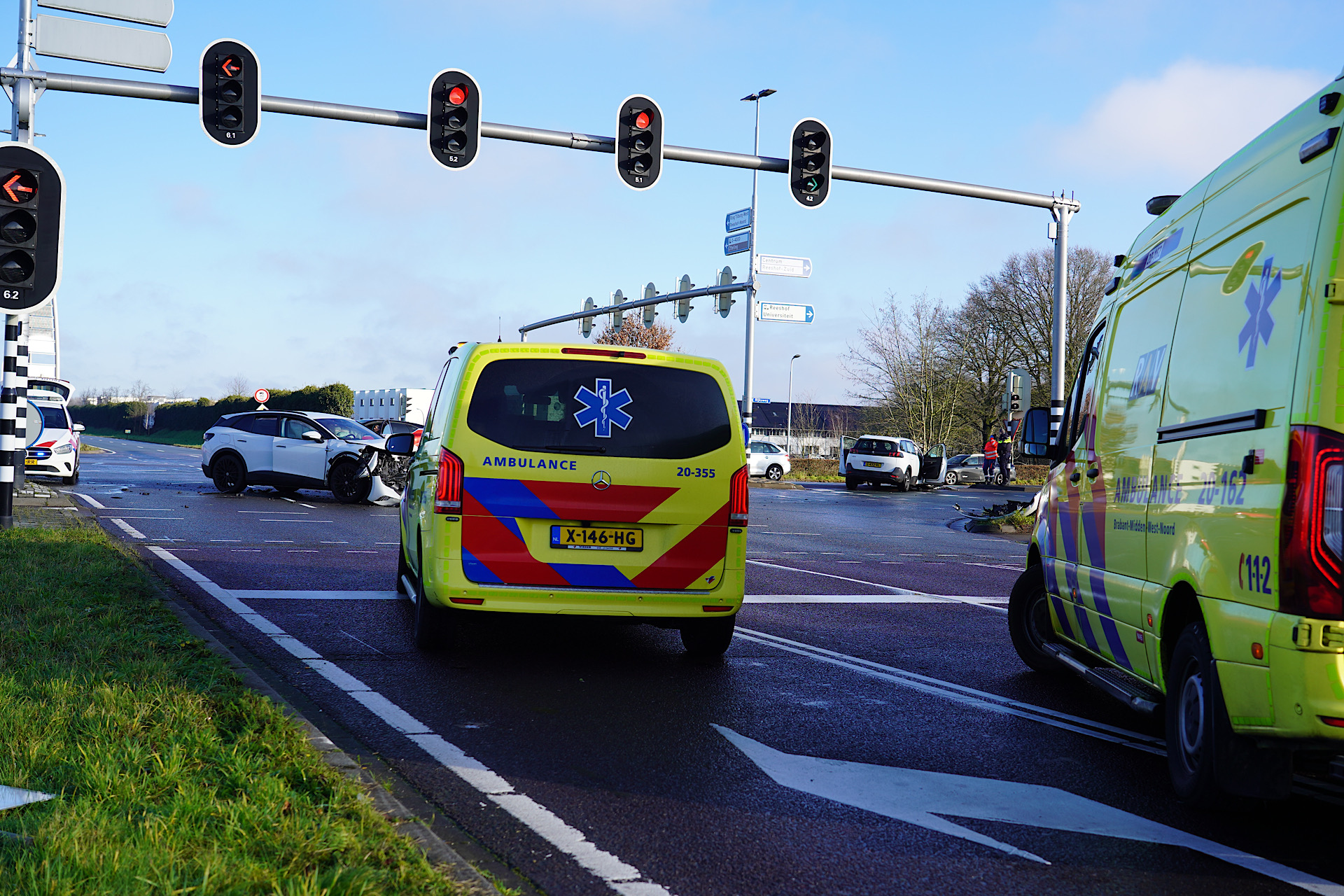 Een deel van de kruising was tijdelijk afgesloten. De zwaar beschadigde voertuigen worden door een bergingsbedrijf afgevoerd.