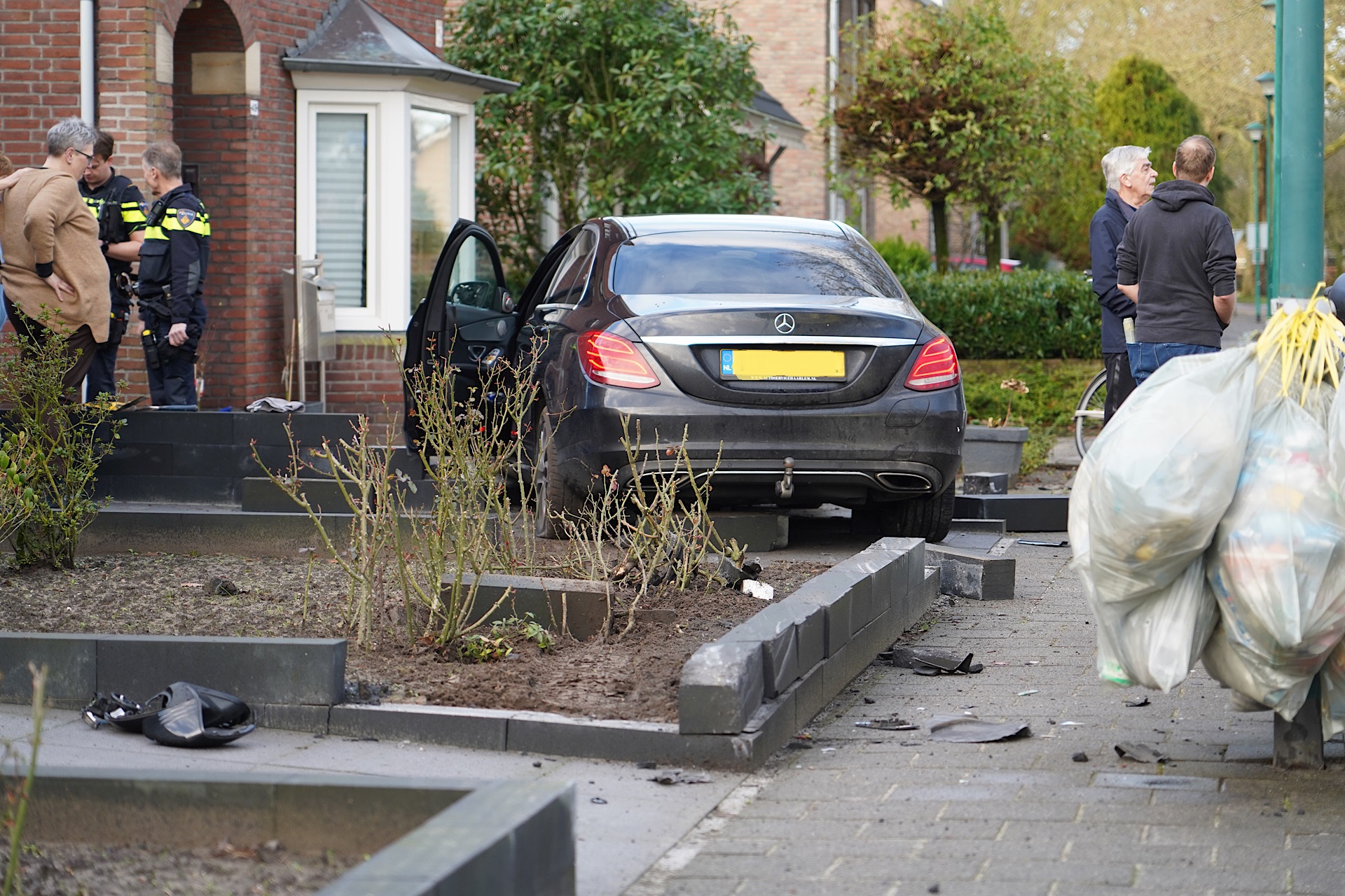 Automobilist verliest macht over het stuur en rijdt voortuin in