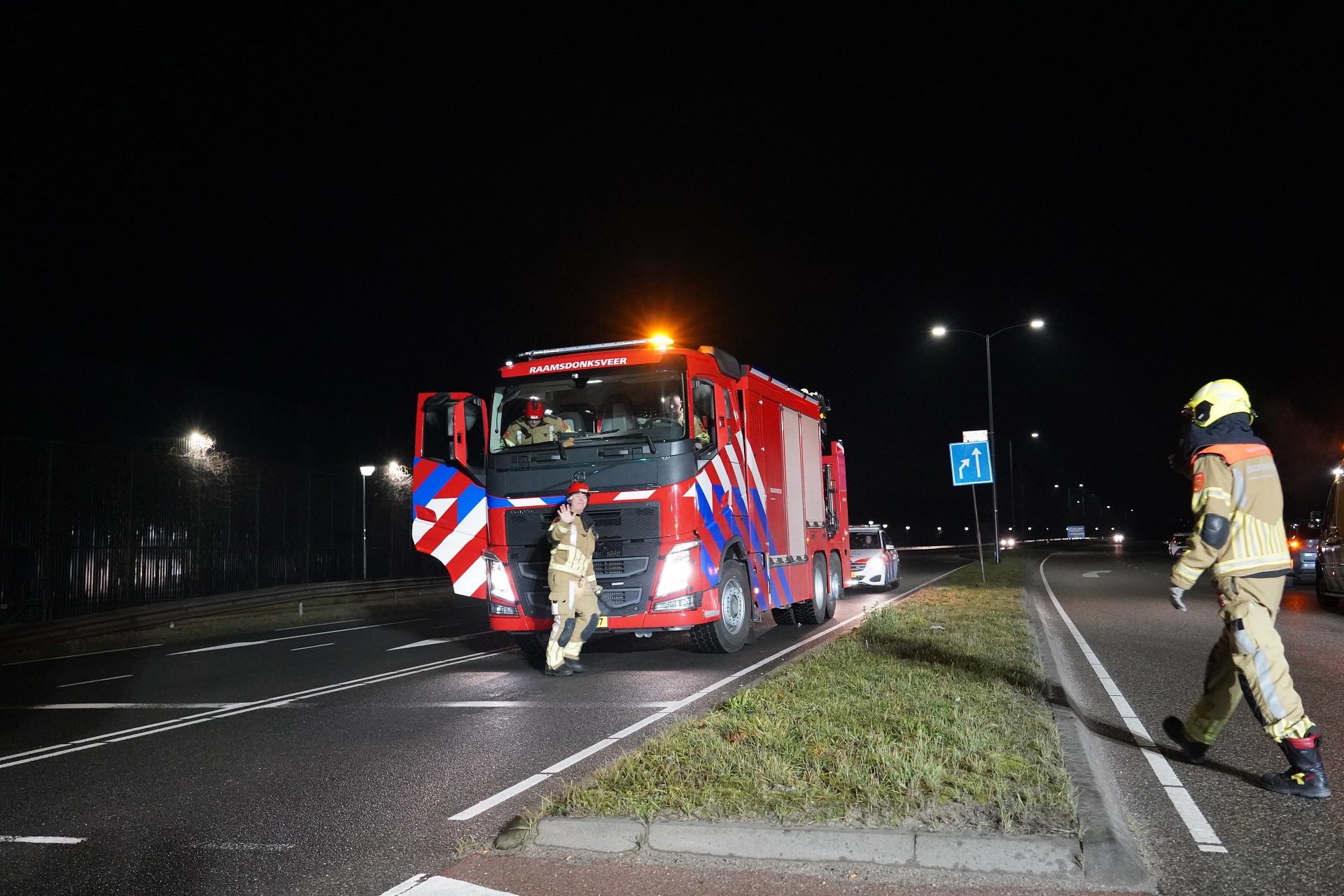 De weg is voorlopig afgesloten. De brandweer heeft schermen geplaatst om het incident af te schermen.
