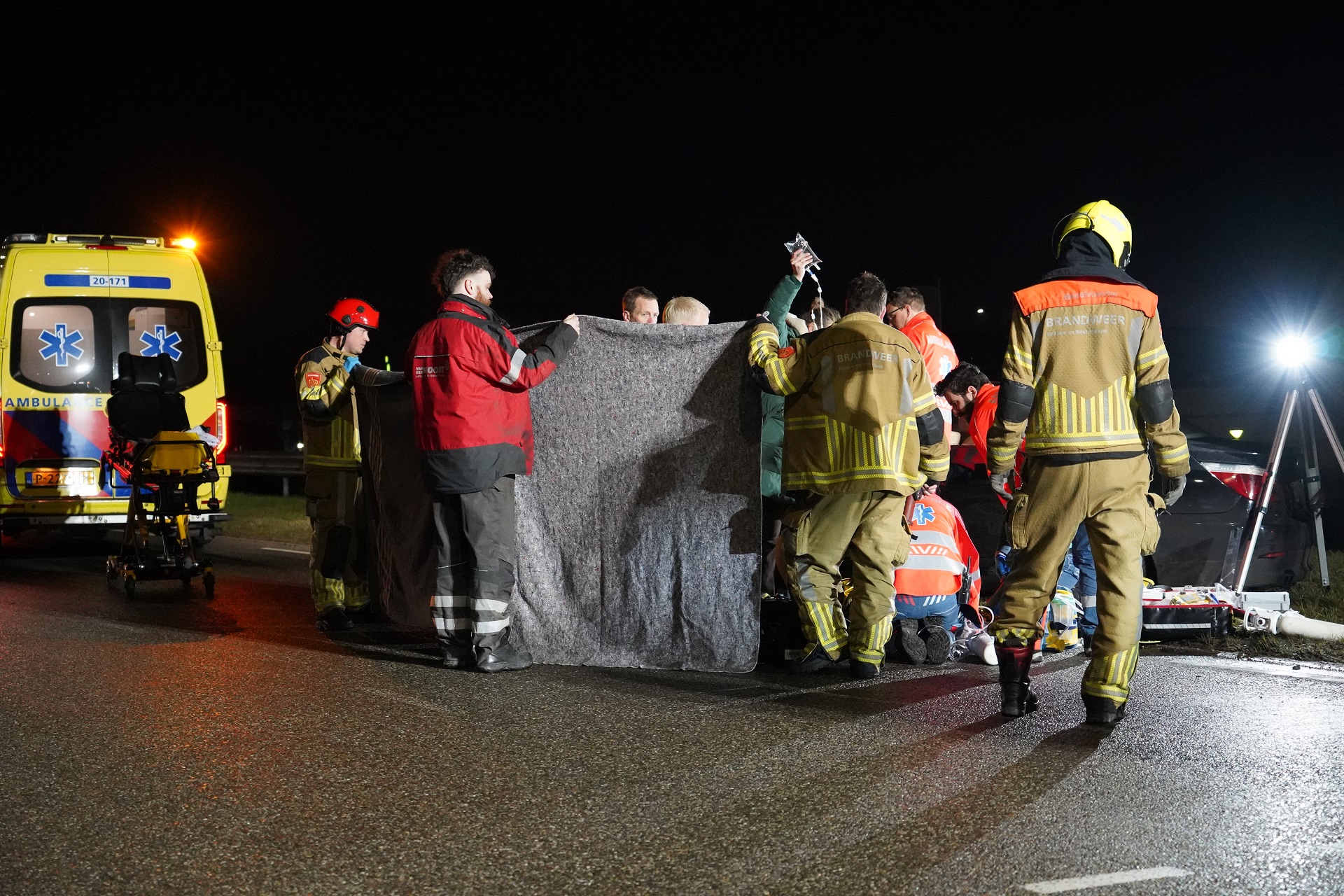 De weg is voorlopig afgesloten. De brandweer heeft schermen geplaatst om het incident af te schermen.