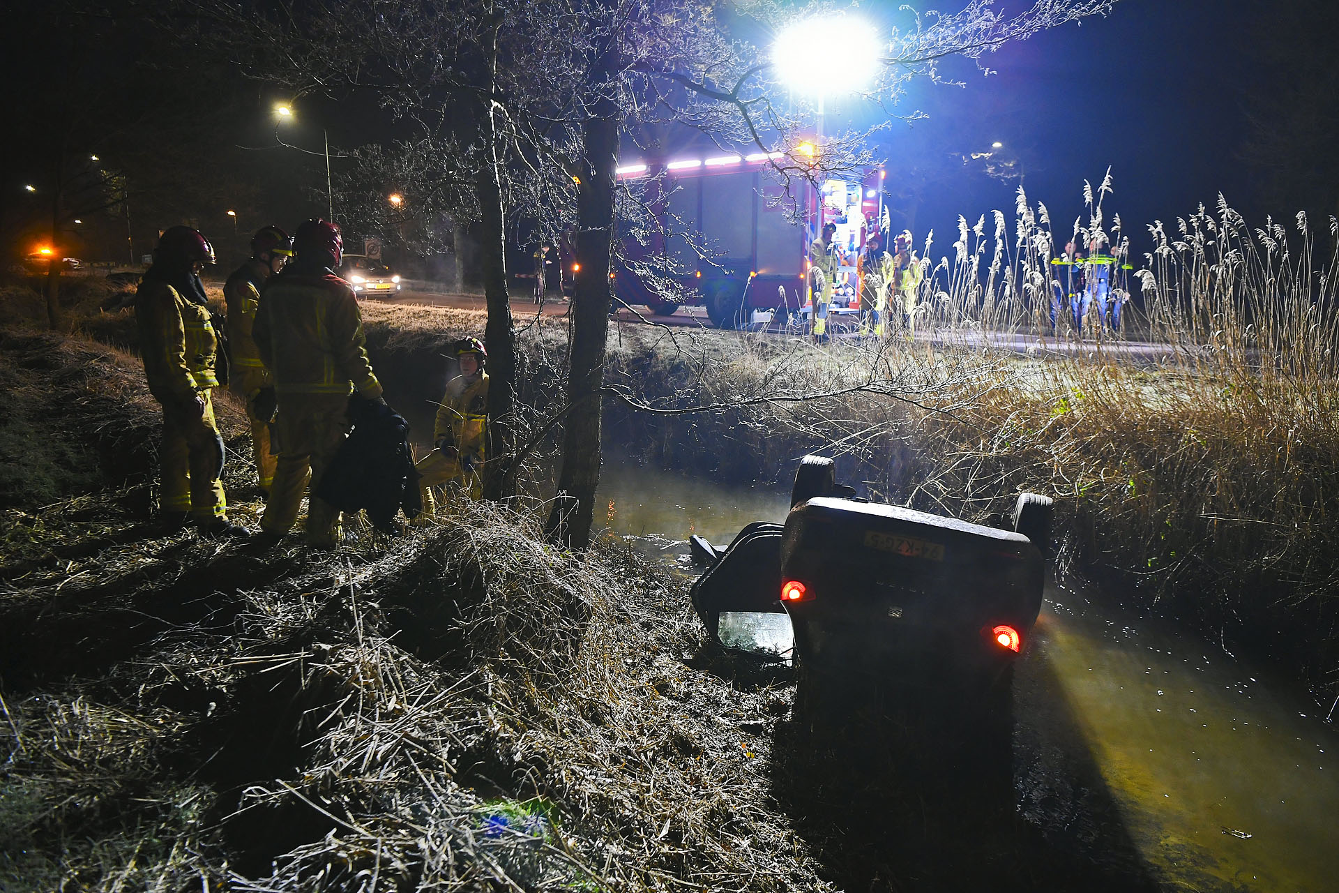 De bestuurder wist zelf uit de auto te komen en werd opgevangen door passanten. Hij is gecontroleerd in een ambulance en daarna met de politie meegegaan.