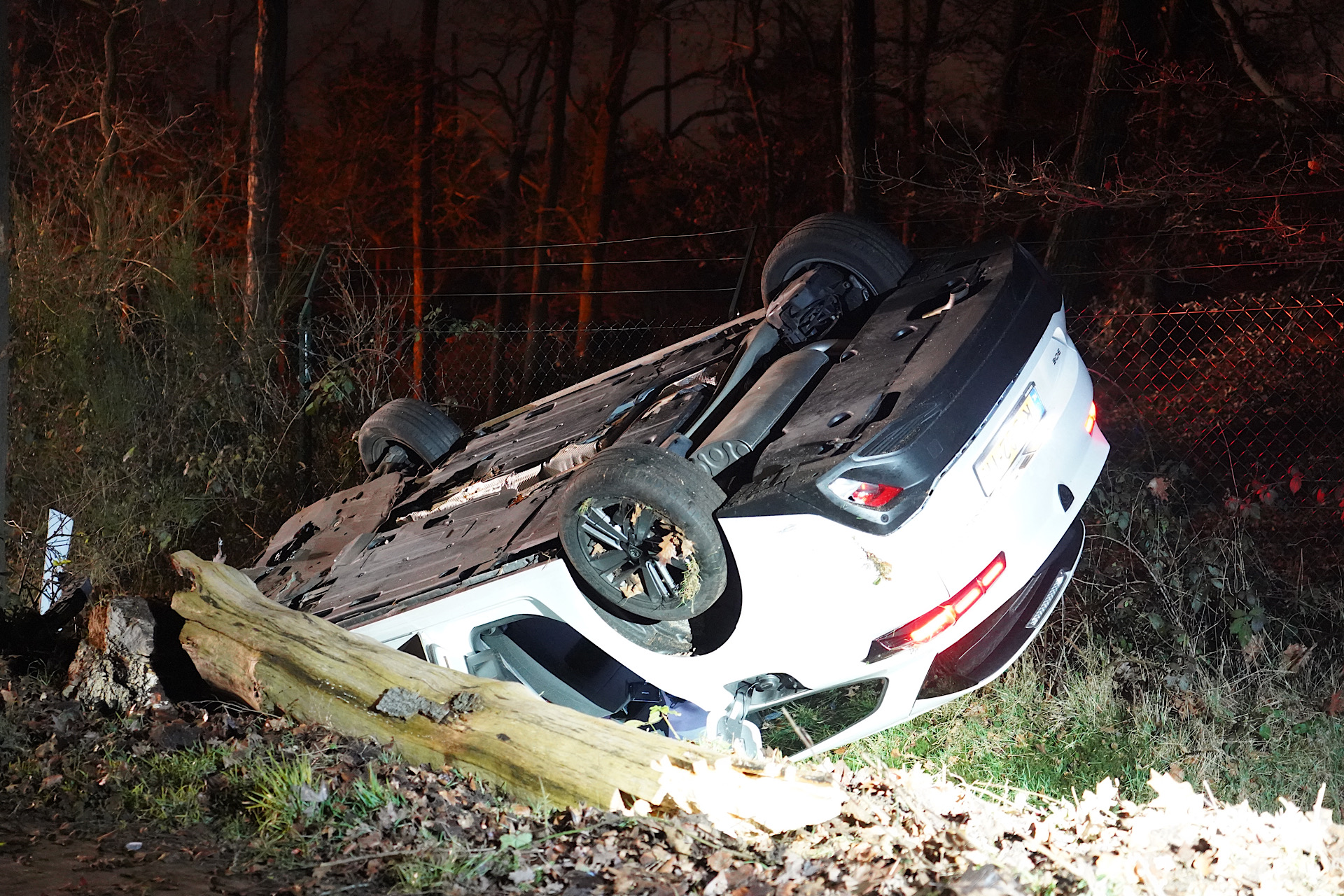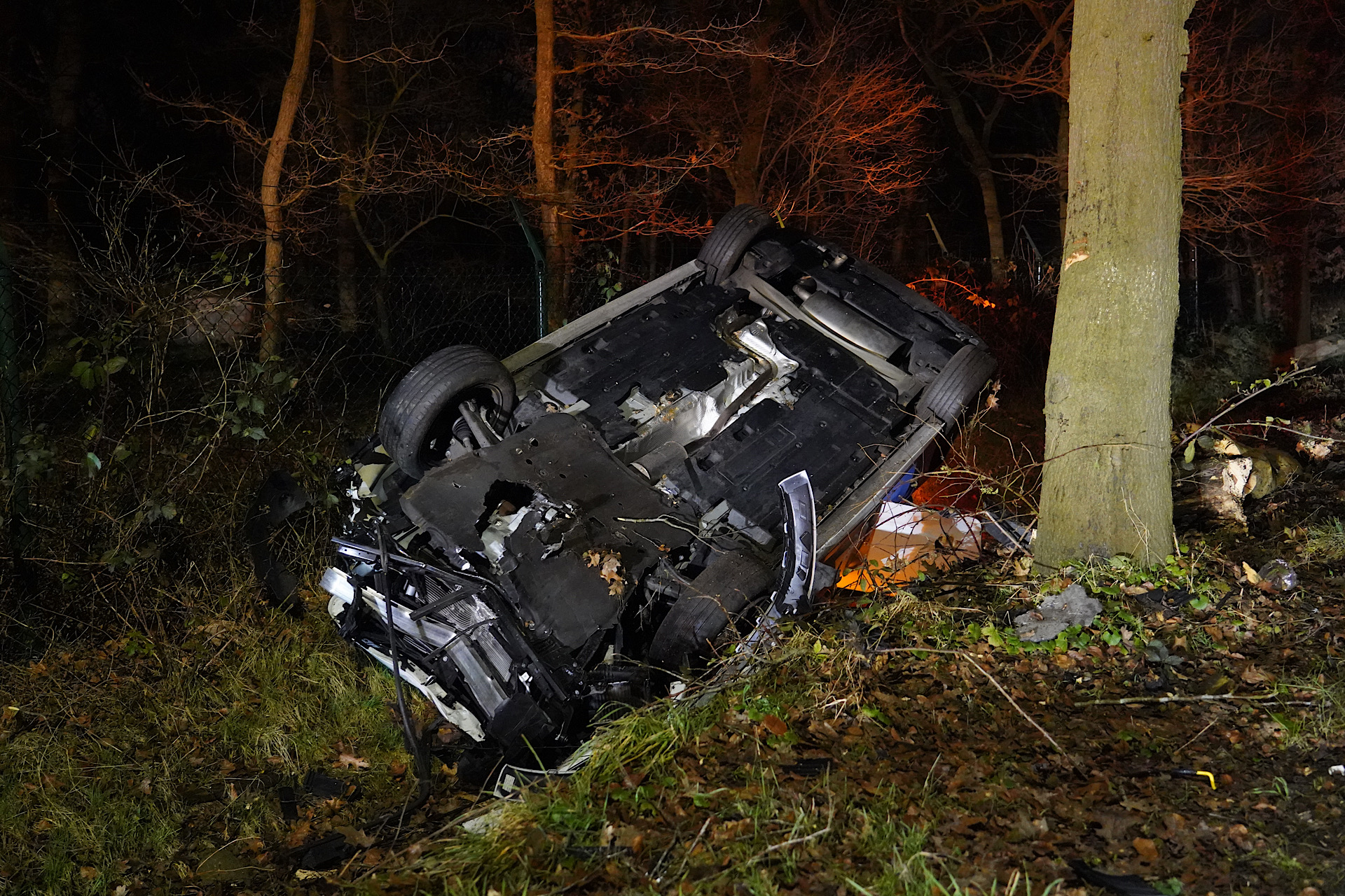 De bestuurder verloor door onbekende oorzaak de controle, maar wist zelfstandig uit het voertuig te komen. Hij raakte lichtgewond en is in de ambulance gecontroleerd.