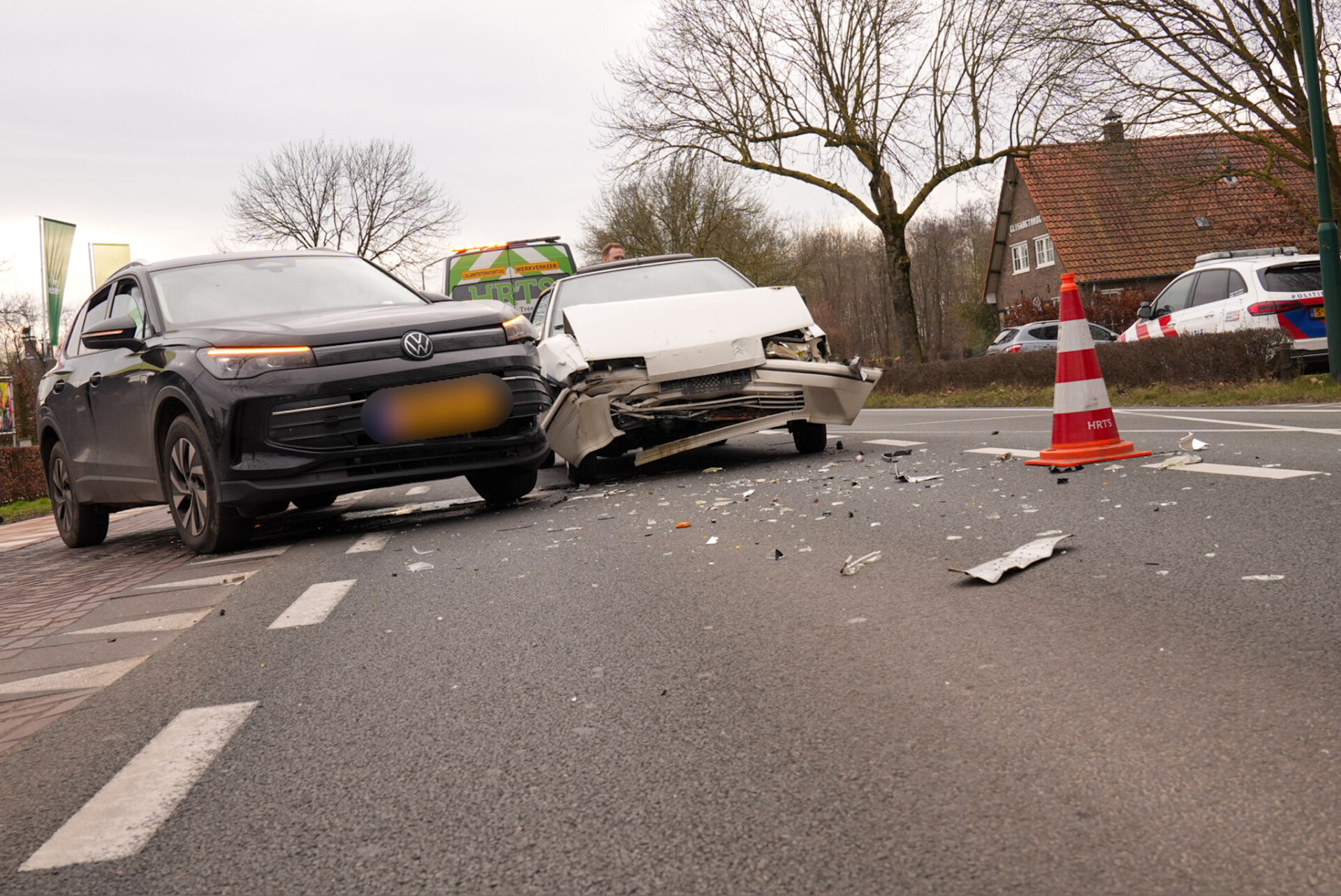 Een van de voertuigen draaide de weg op en zag de andere auto over het hoofd. De inzittenden werden in een ambulance onderzocht, één persoon is uiteindelijk naar het ziekenhuis vervoerd.