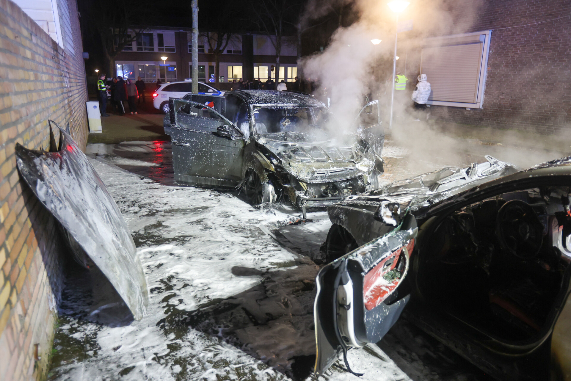 Geplaatst op 9 februari 2025, om 09:45 uurEINDHOVEN – De brandweer ontving om 23.18 uur een melding van een autobrand aan de Jan van Riebeecklaan. In een zijstraat, de Johannes Vermeerstraat, bleken twee geparkeerde auto’s aan de voorzijde in brand te staan. Door een lekkende brandstofleiding was het blussen lastig, maar met twee stralen hoge druk en schuim kreeg de brandweer het vuur onder controle.