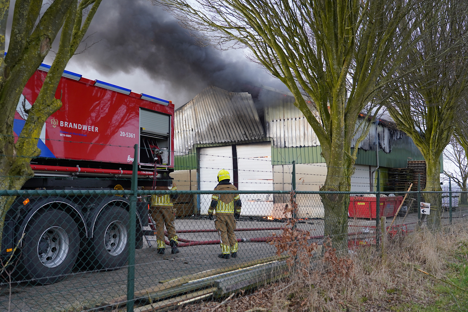 De rook was in de wijde omgeving zichtbaar. De oorzaak van de brand is nog onbekend. In de loods lagen onder meer ijzer en metaal.