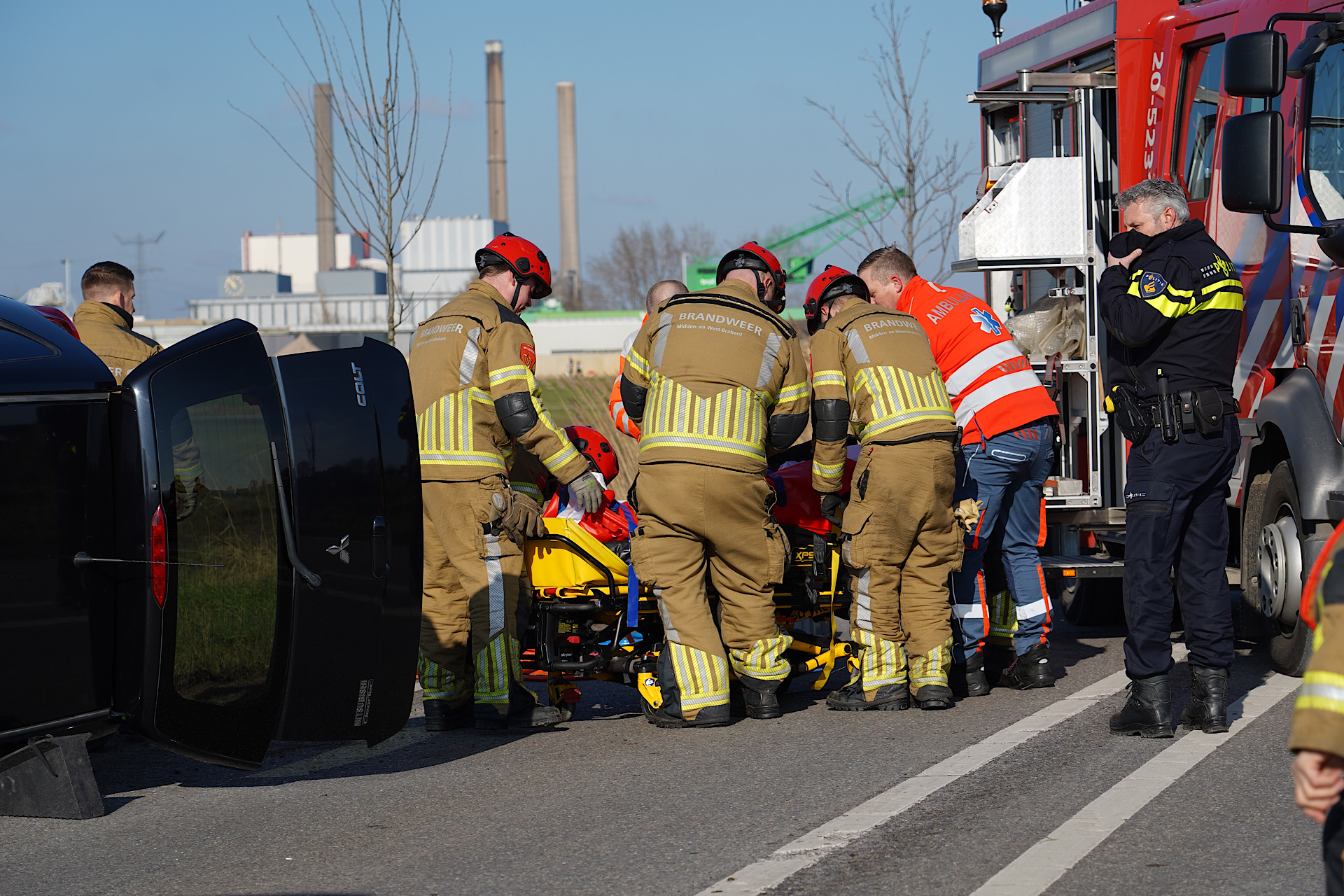 Een voorbijganger schoot direct te hulp en klom de auto in om de bestuurster bij te staan. Uiteindelijk heeft de brandweer de vrouw bevrijd, waarna zij met onbekend letsel naar het ziekenhuis is gebracht.