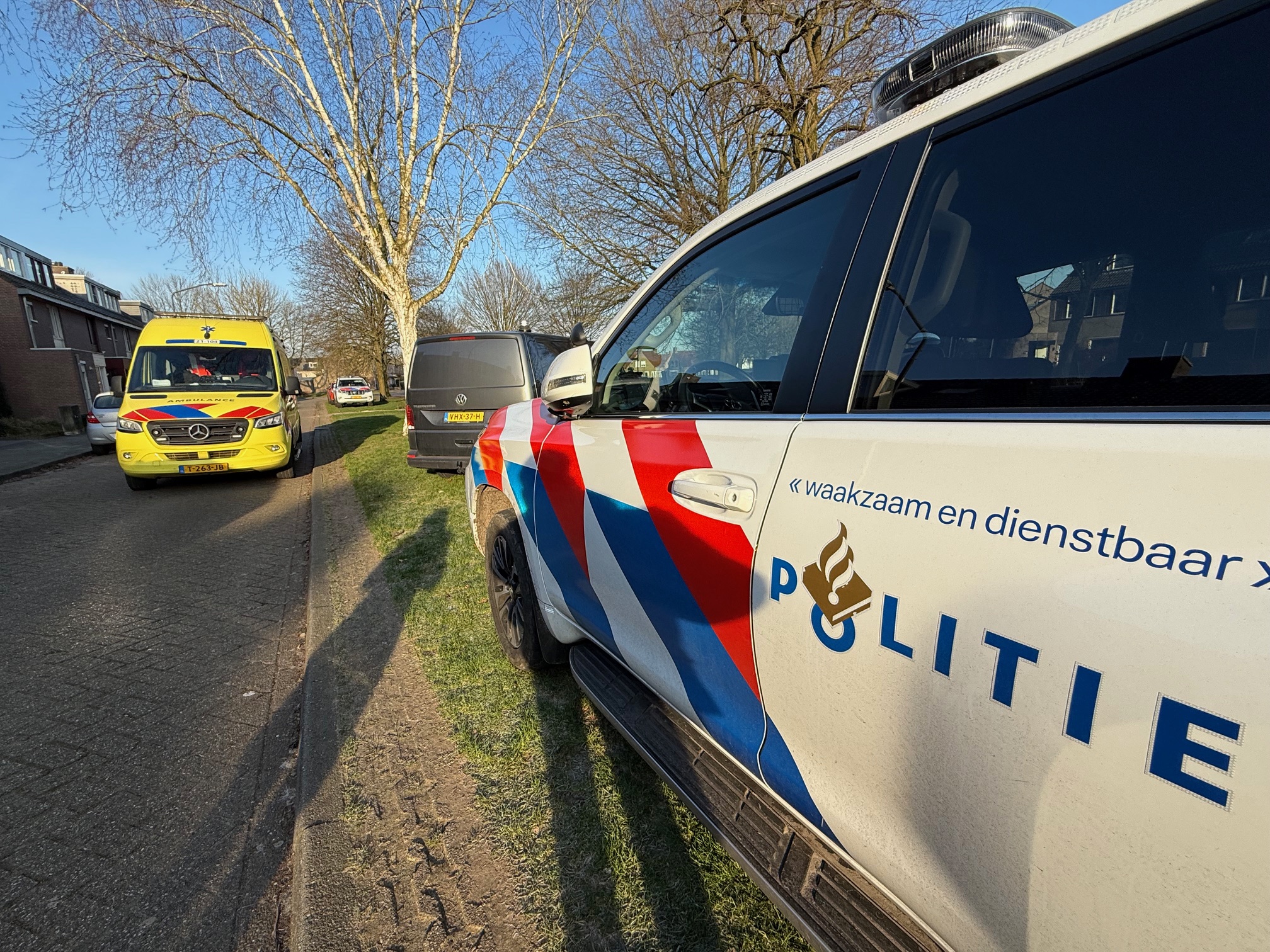 Ambulancepersoneel en de technische recherche zijn ter plaatse. De politie onderzoekt de zaak.