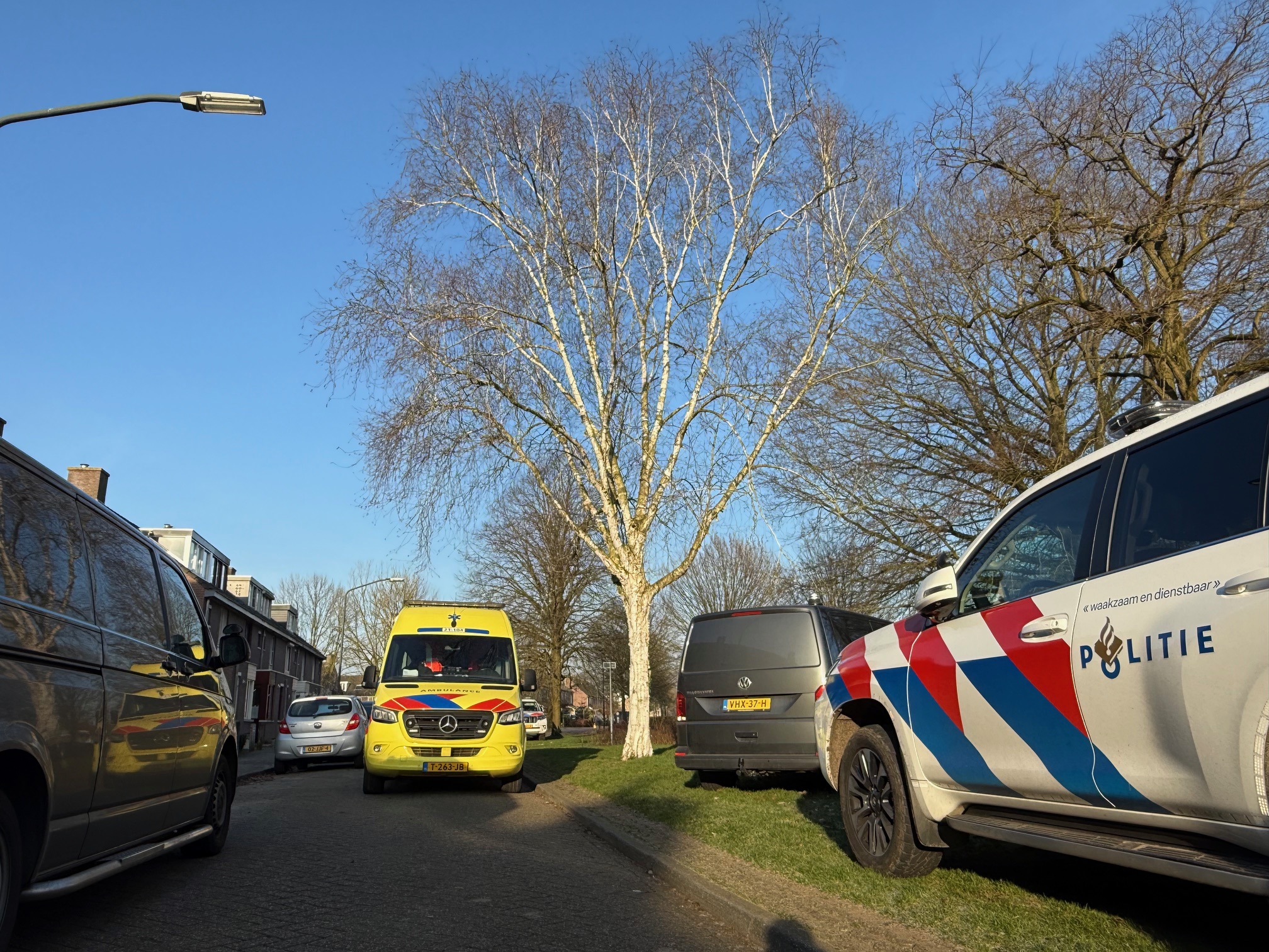 Ambulancepersoneel en de technische recherche zijn ter plaatse. De politie onderzoekt de zaak.